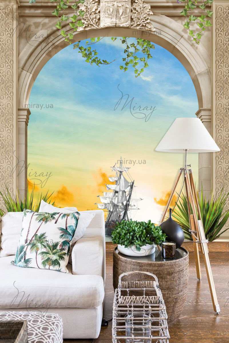 f-01-013-Arch with a ship at sunset