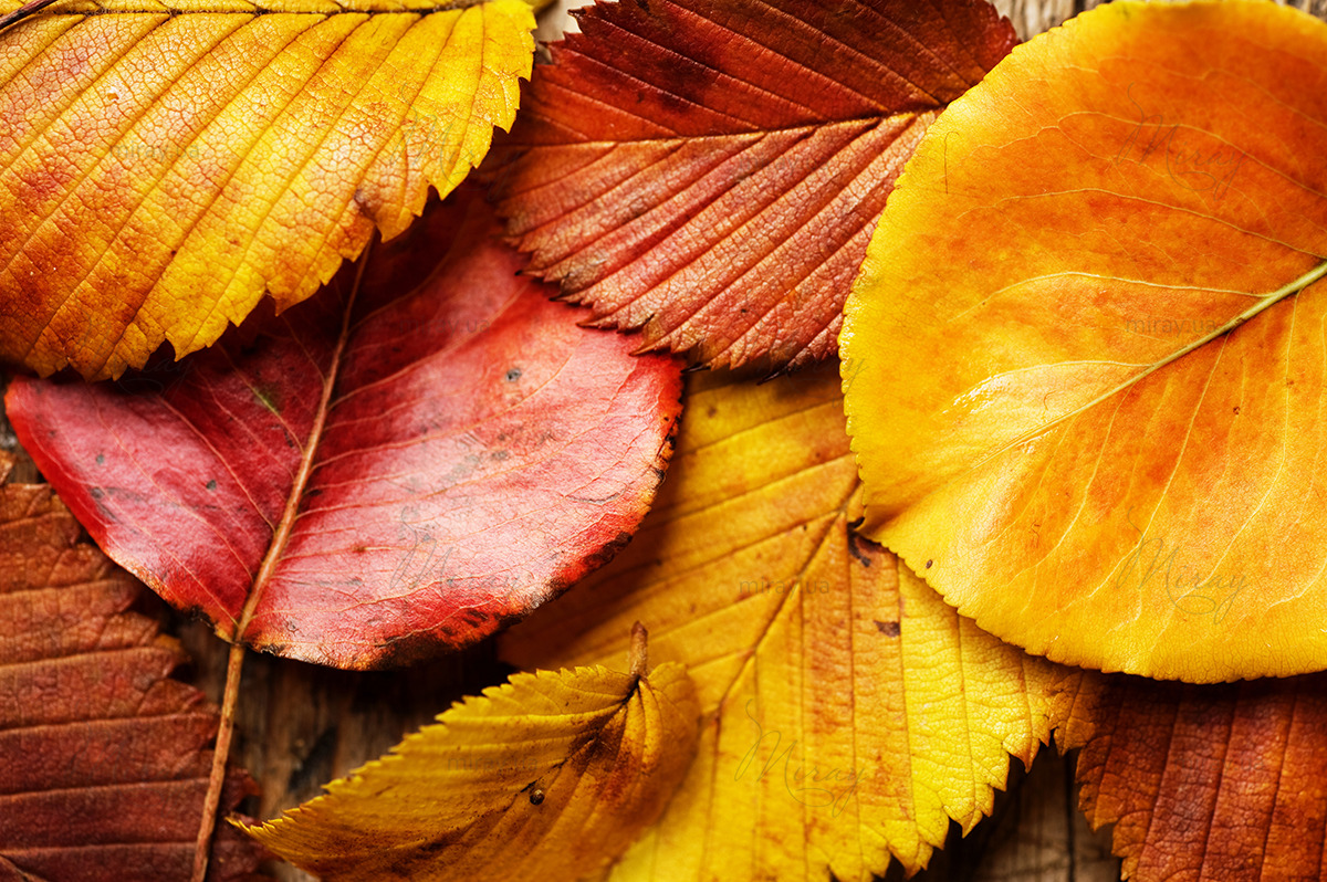 Autumn leaves on a wooden surface 2