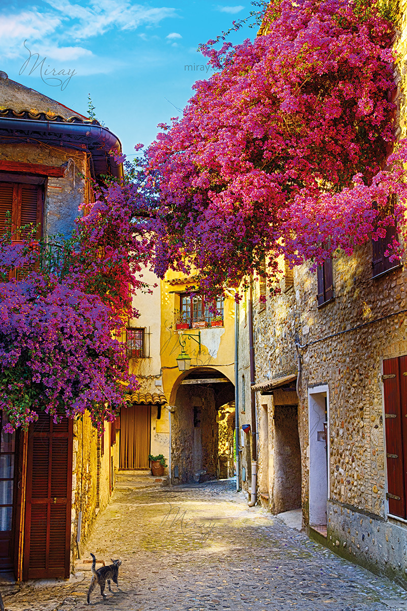 p-02-123-Beautiful street with flowers, Provence