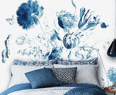 Designer Wallpaper with Blue Flowers✨