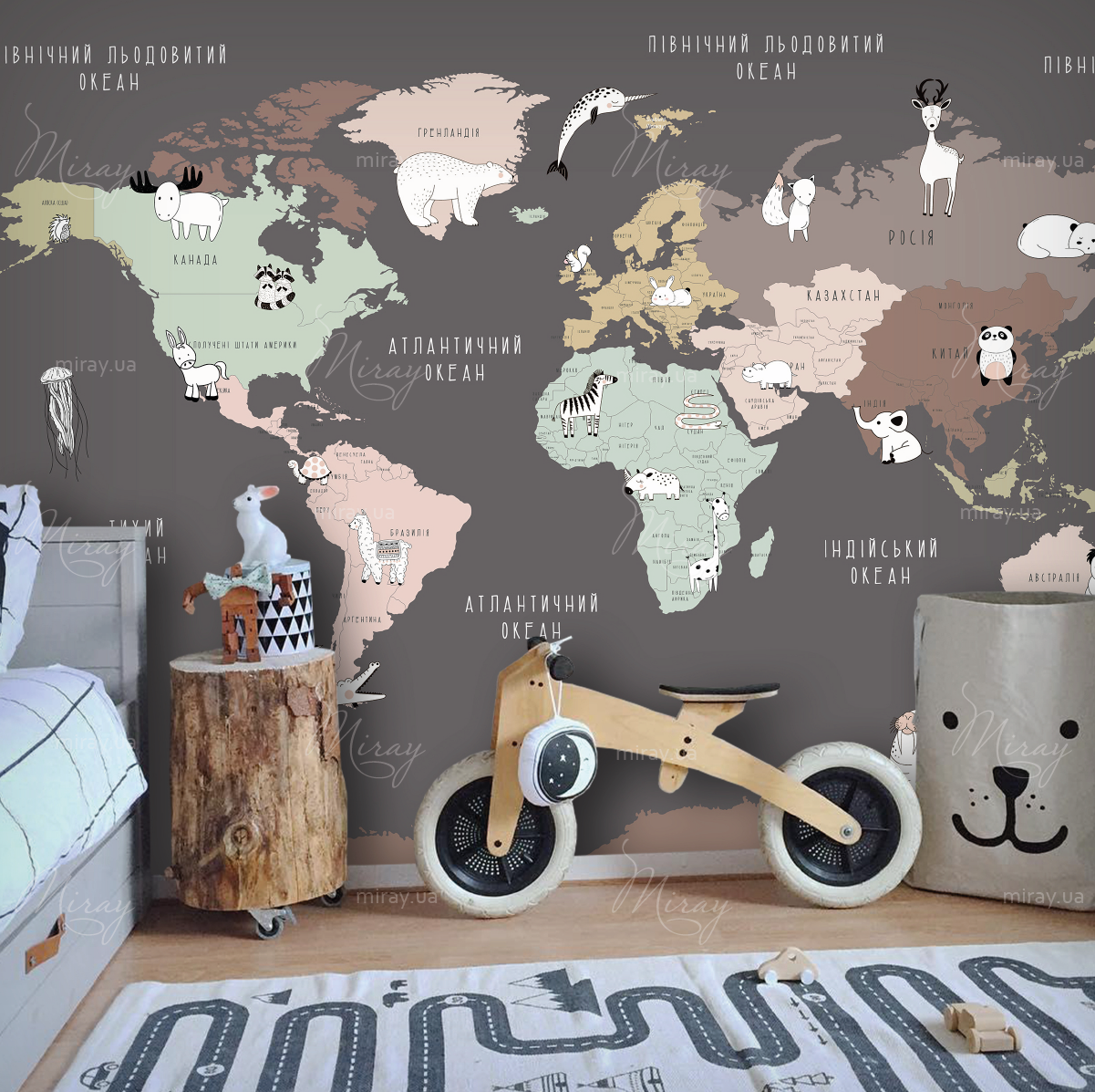 This is not just a decor, it is part of the knowledge of the world, the development of the child, his knowledge of our planet. Incredibly beautiful and stylish card will become the main decoration of the children’s room