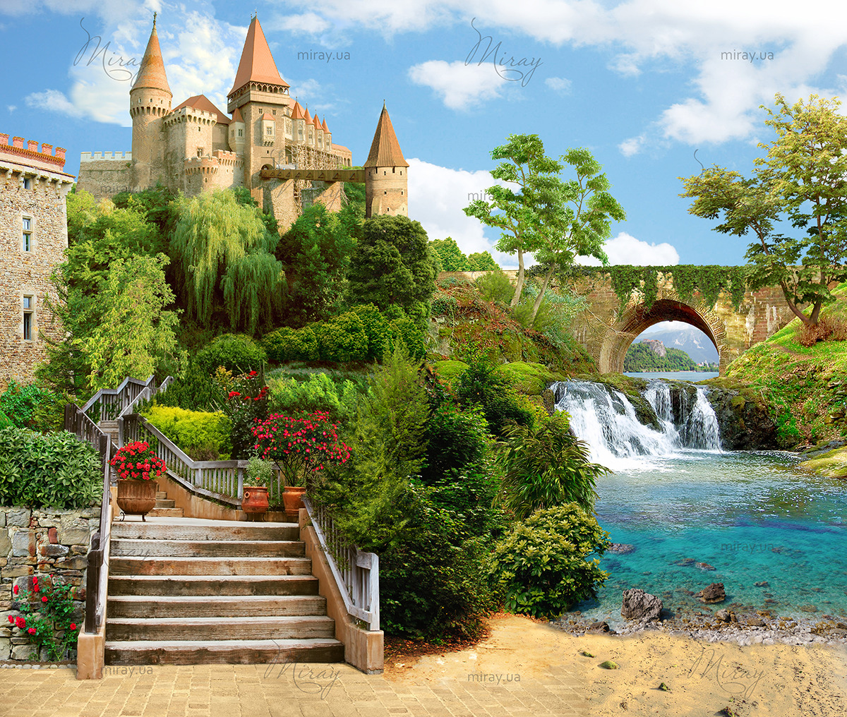 Castle with a waterfall