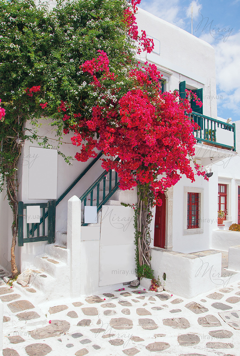 Courtyard with bright colors, Mykonos