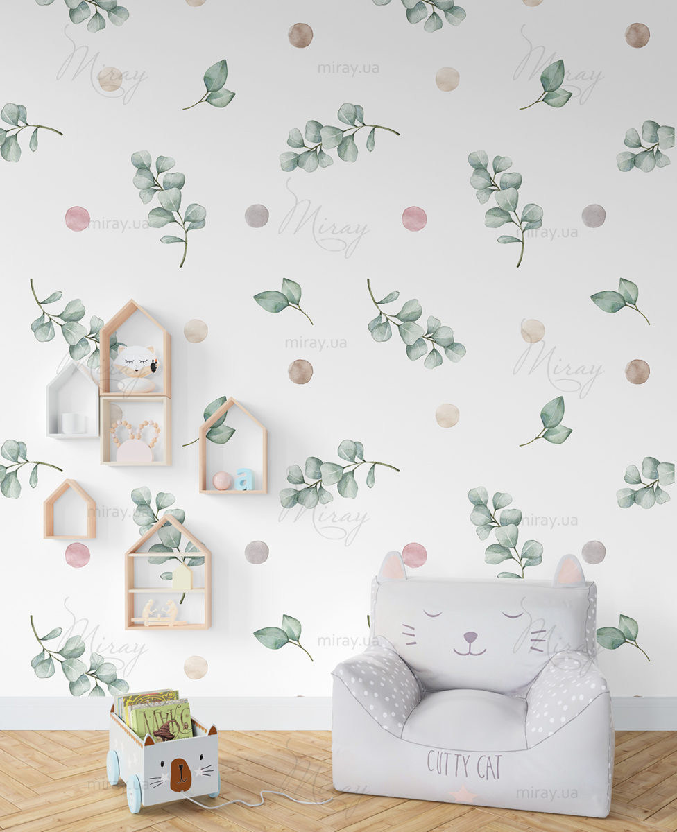 Eucalyptus leaves and dots