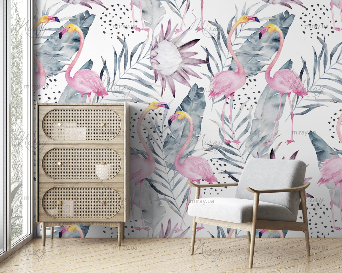 Flamingo in leaves