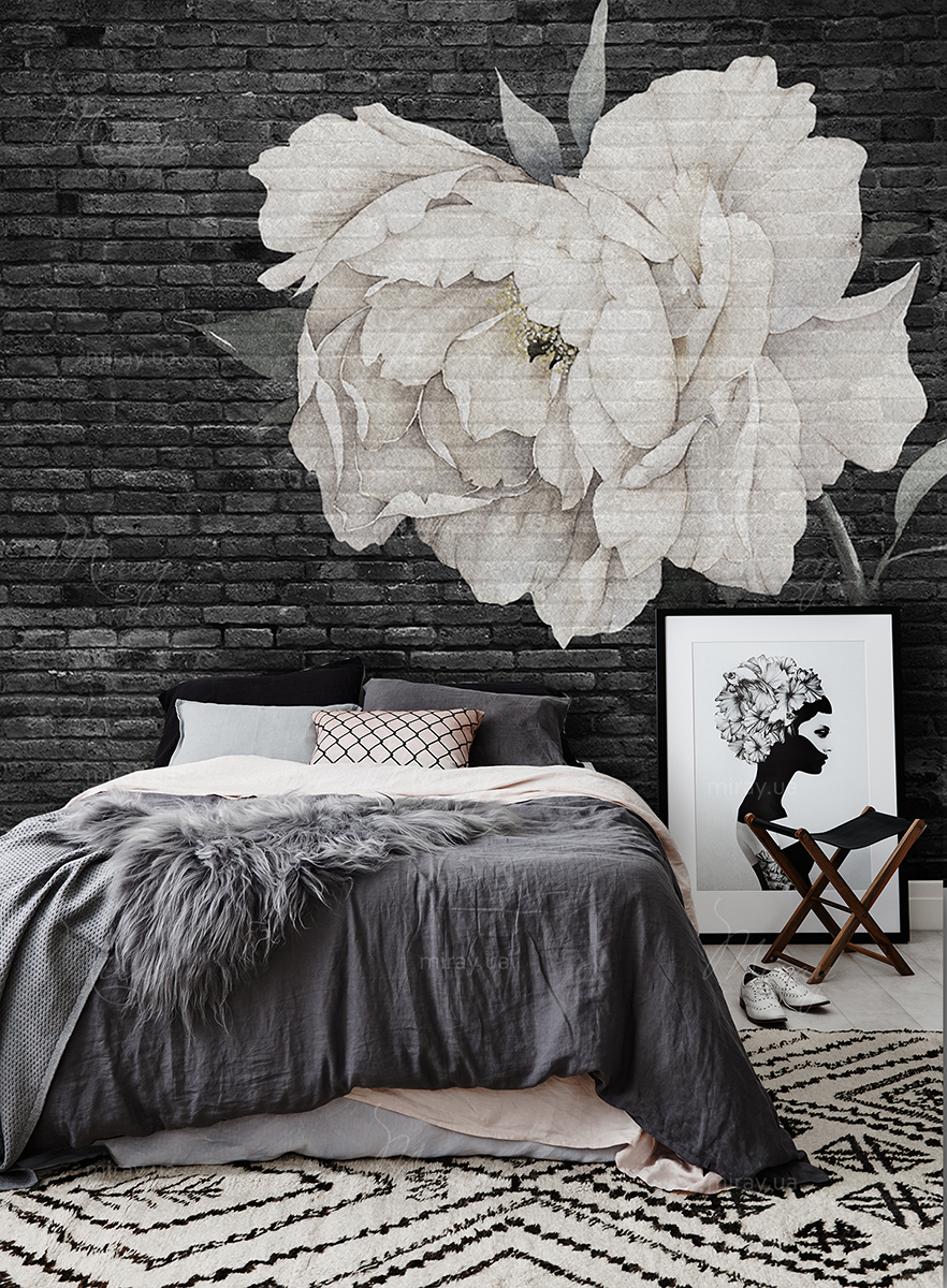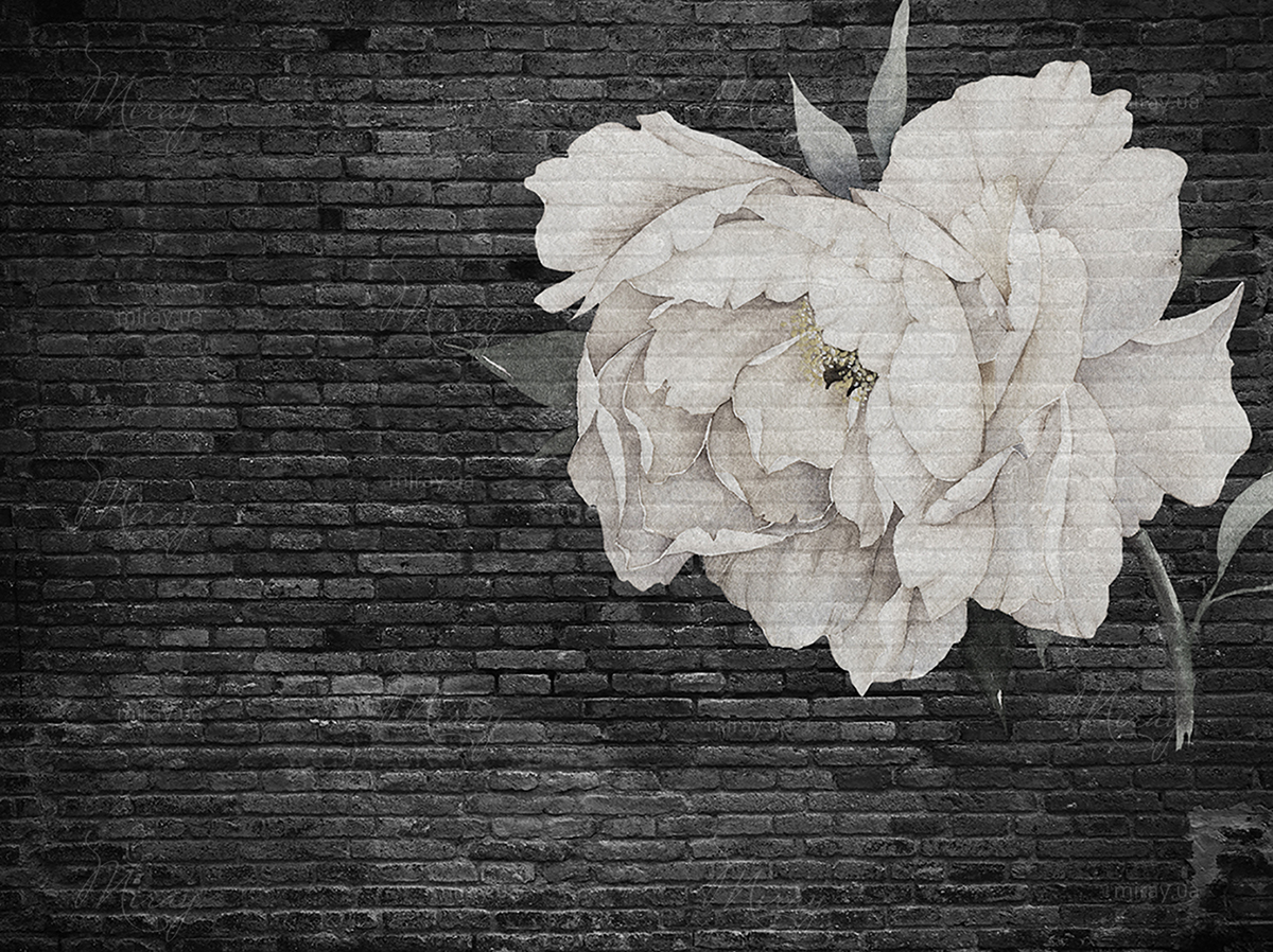 Flower on a black brick wall