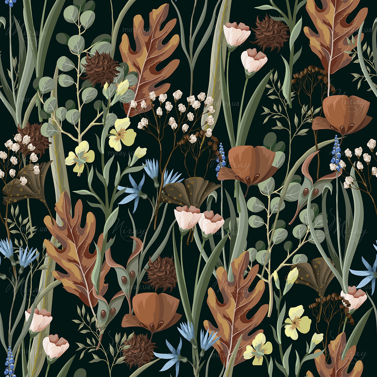 Flowers and leaves in autumn colors