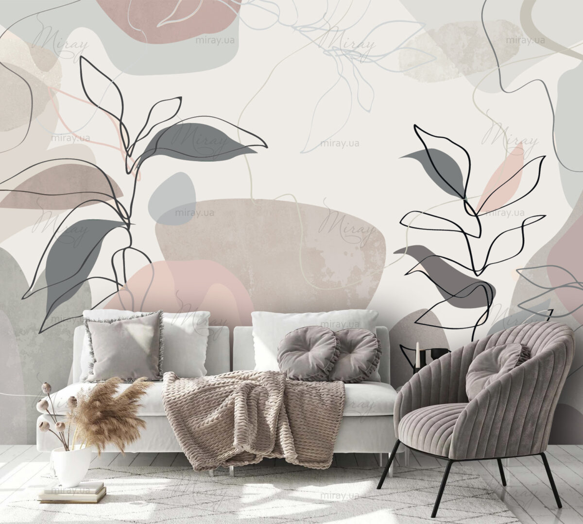 Leaves gray-pink line art