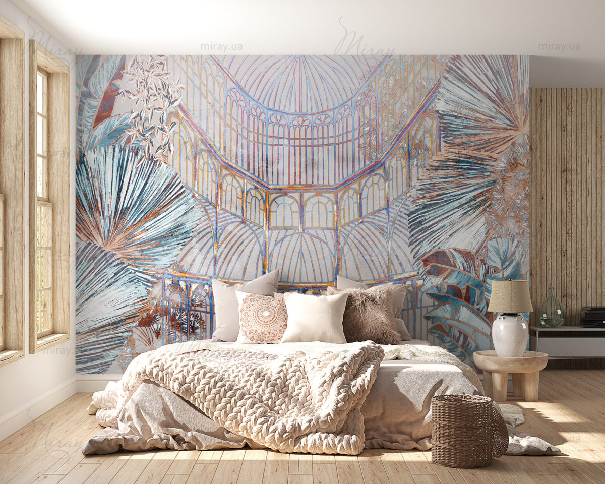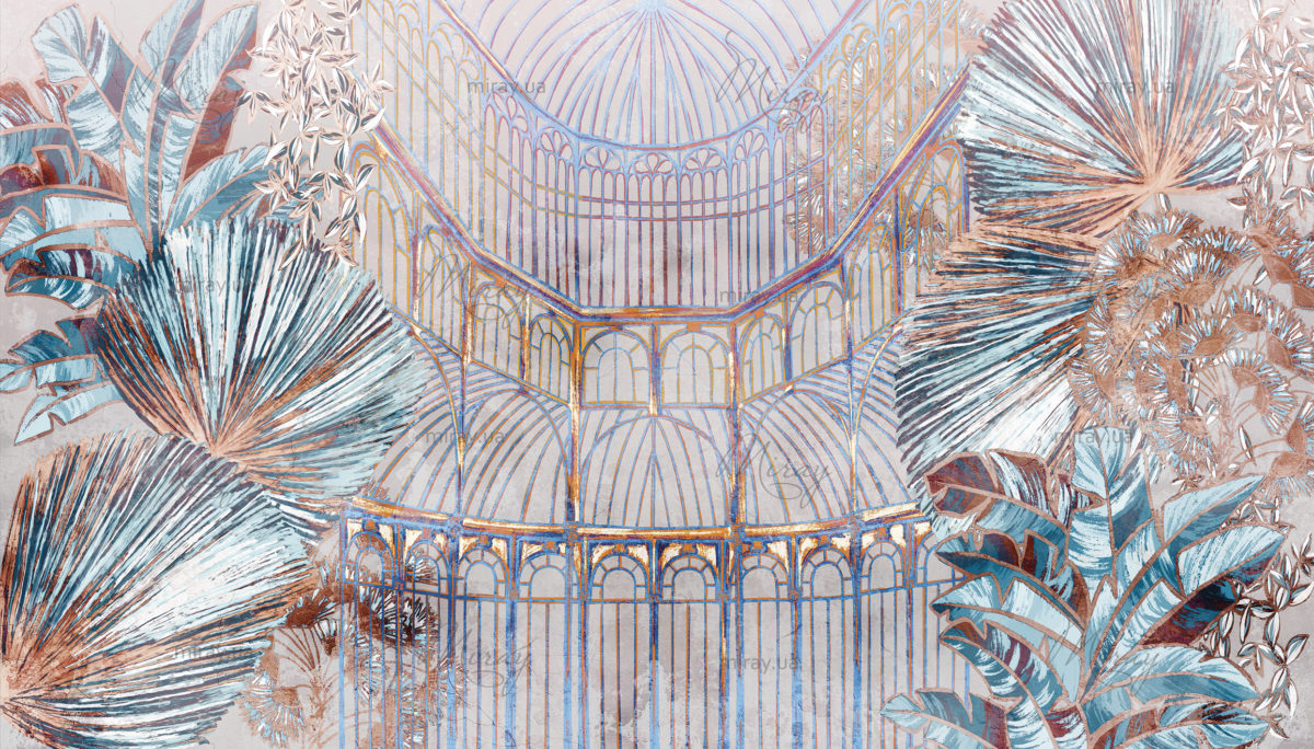 Graphic,Illustration,Of,A,Greenhouse.,Floral,Wallpaper,With,Exotic,Jungle