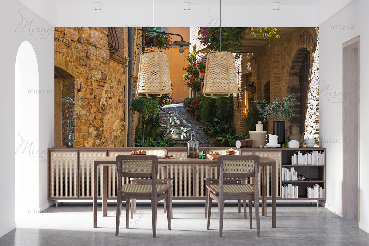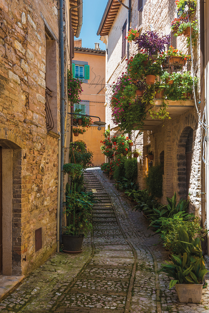 p-02-100-Italian street overgrown with dense green vegetation in Tuscany