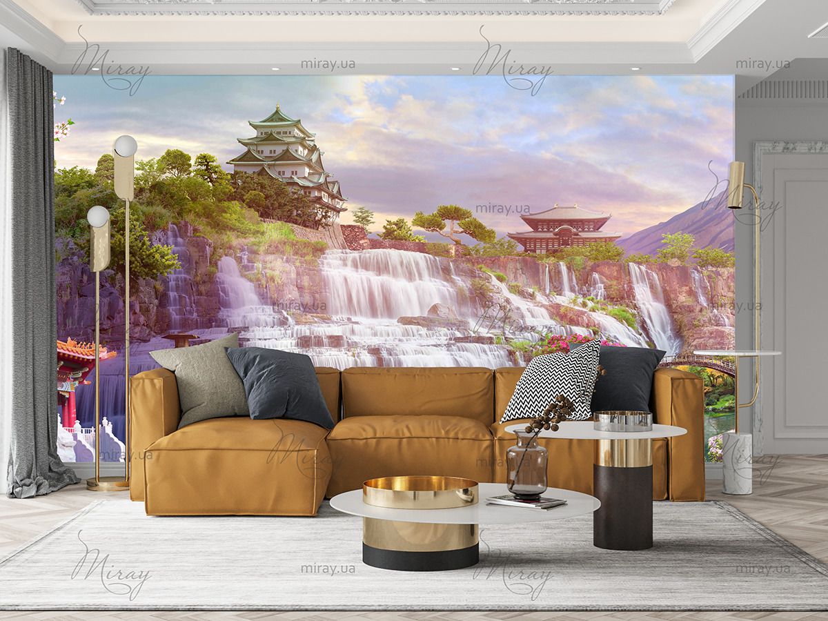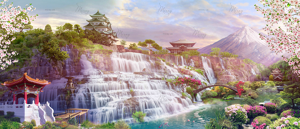 f-03-086-Japanese garden with sakura and waterfalls