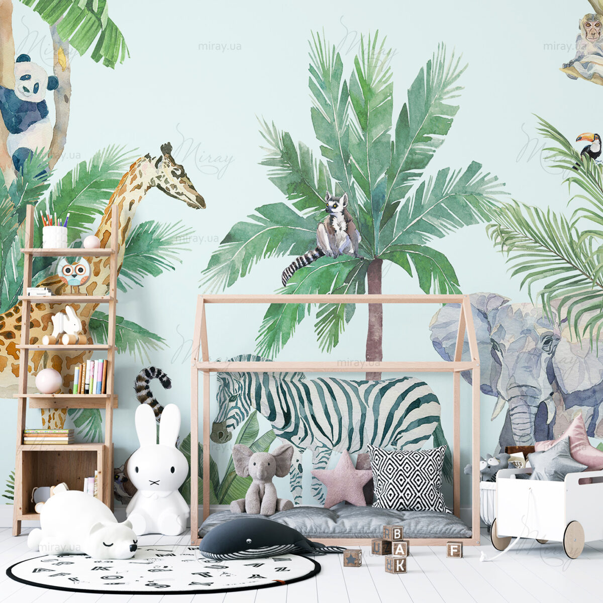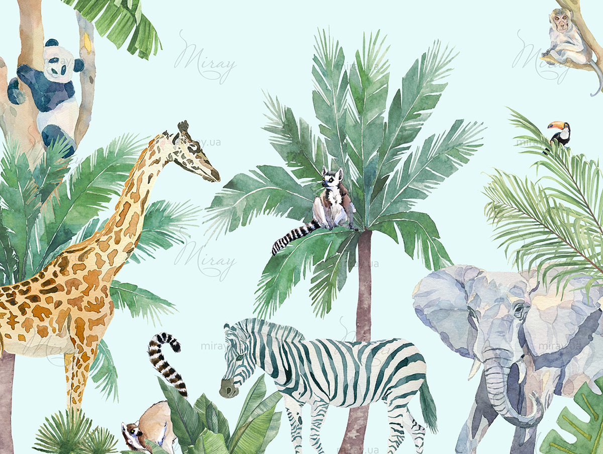 Watercolor jungle with animals