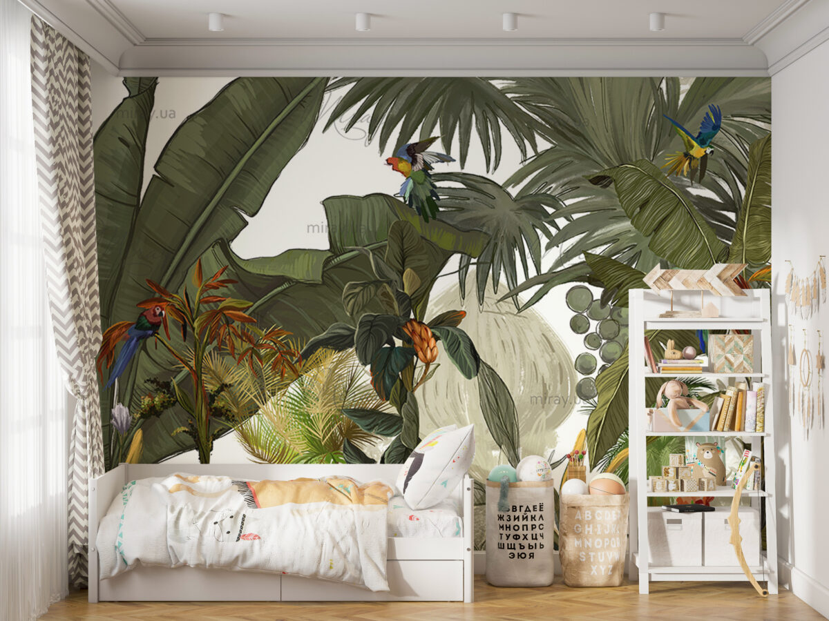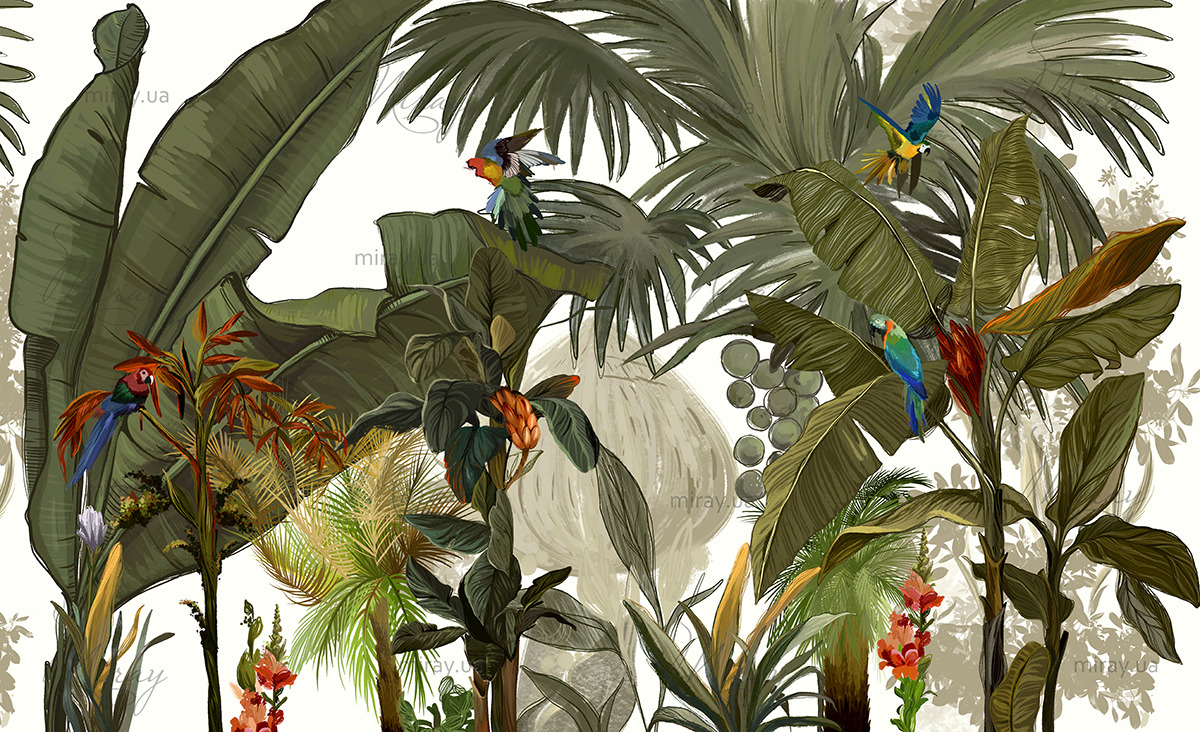 Jungle with parrots green
