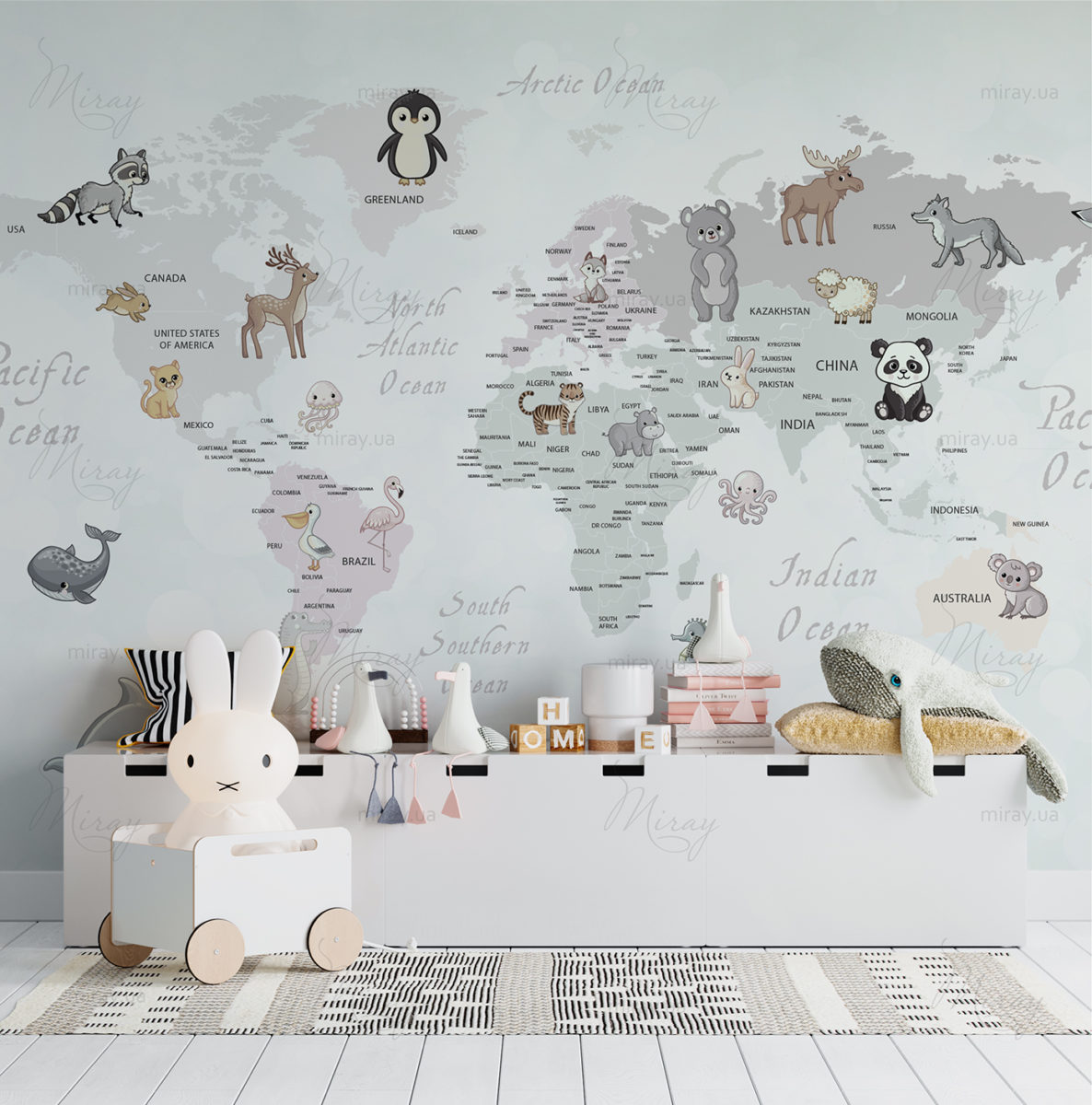 Kids map with animals pastel