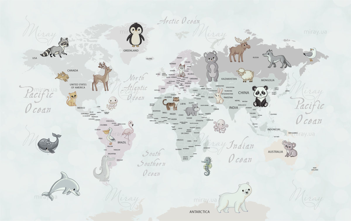 Карта детская с животными не яркая