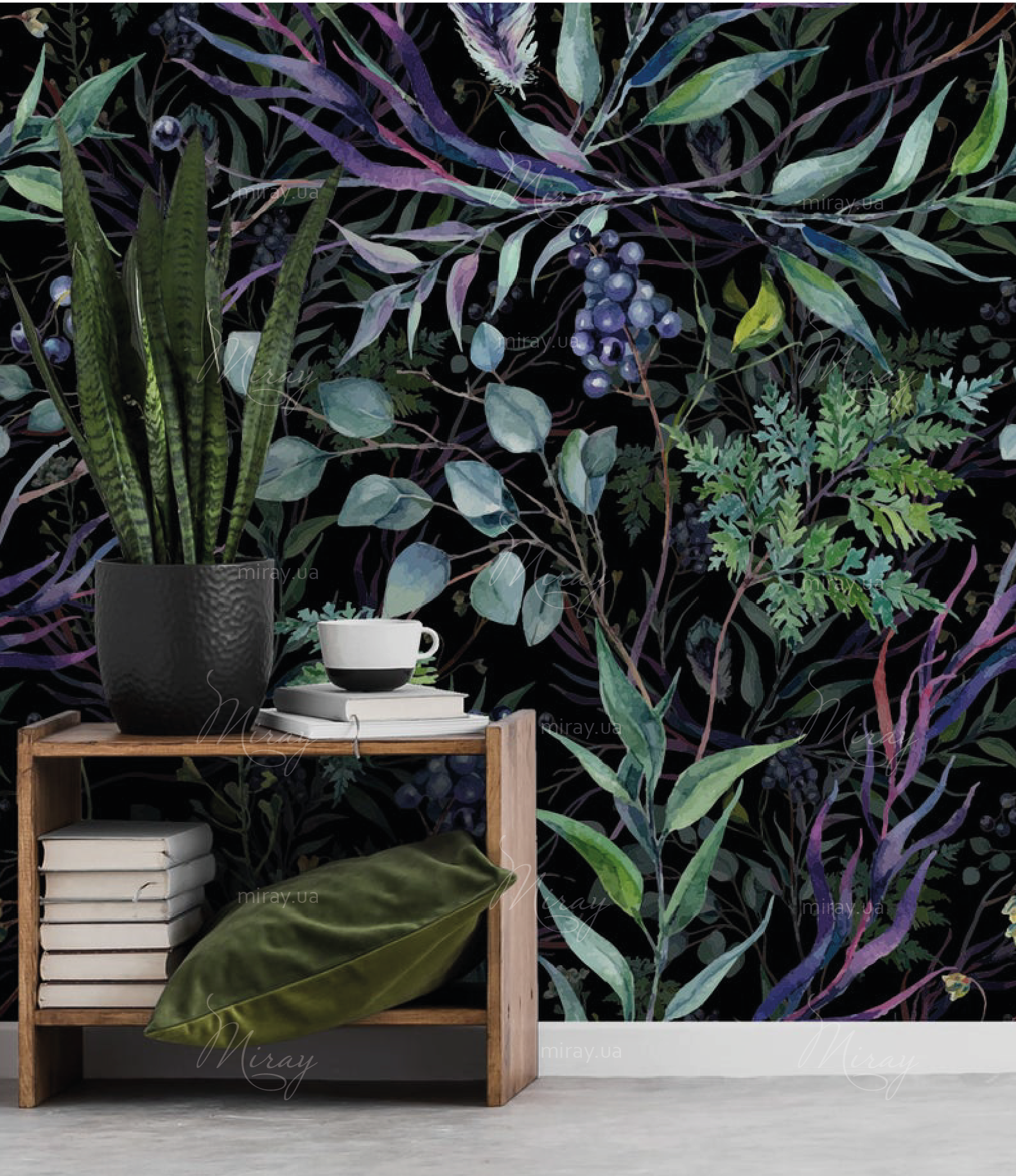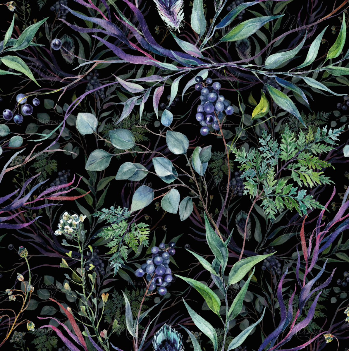Leaves on dark watercolor background
