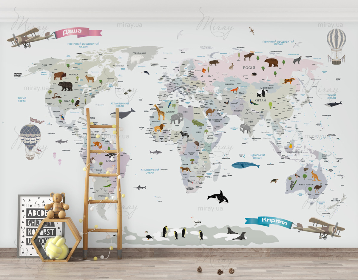 This is not just a decor, it is part of the knowledge of the world, the development of the child, his knowledge of our planet. Incredibly beautiful and stylish card will become the main decoration of the children’s room