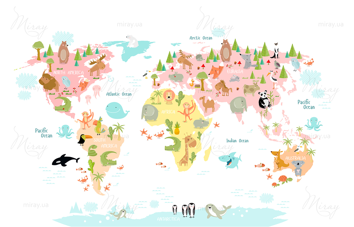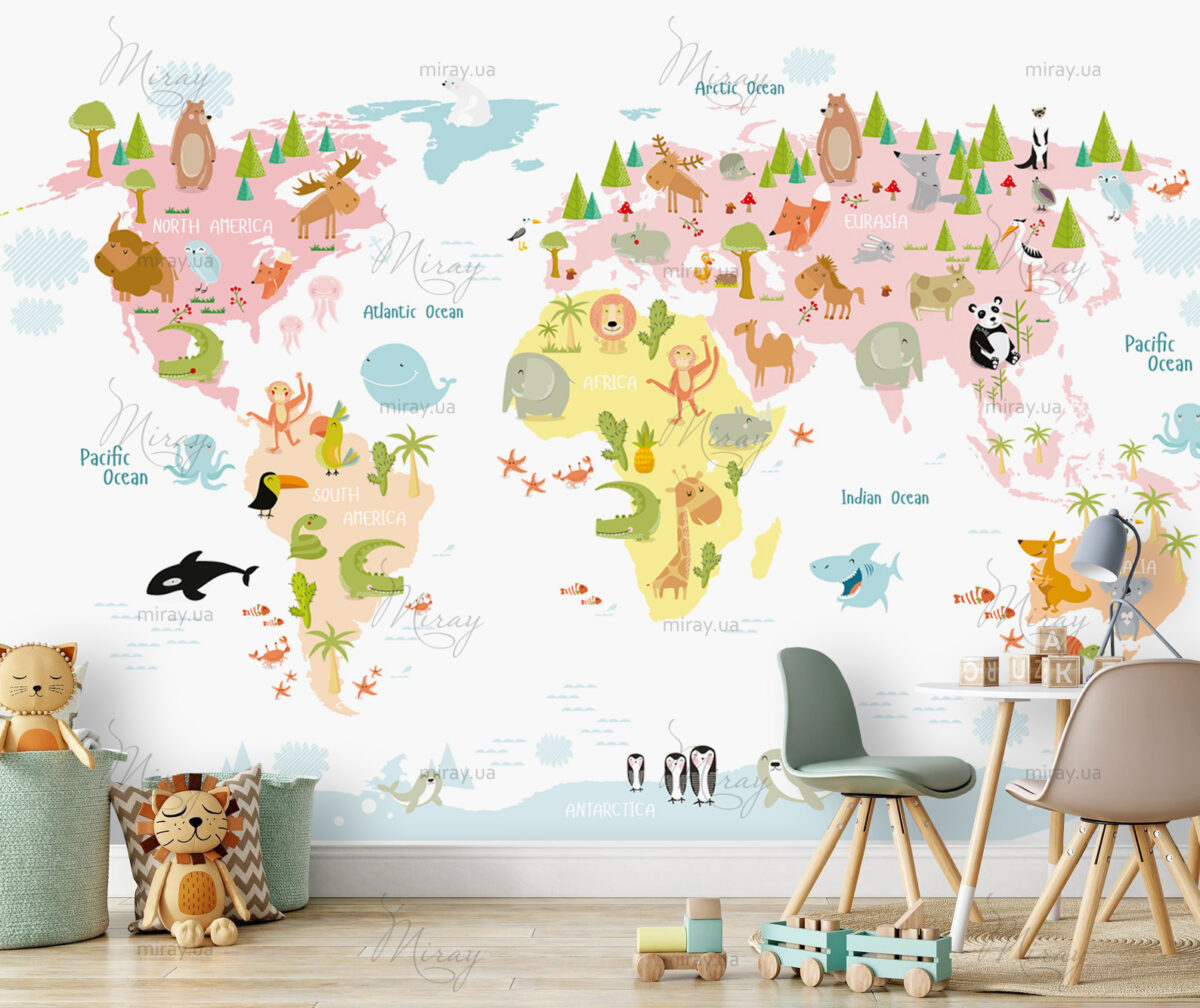 This is not just a decor, it is part of the knowledge of the world, the development of the child, his knowledge of our planet. Incredibly beautiful and stylish card will become the main decoration of the children’s room