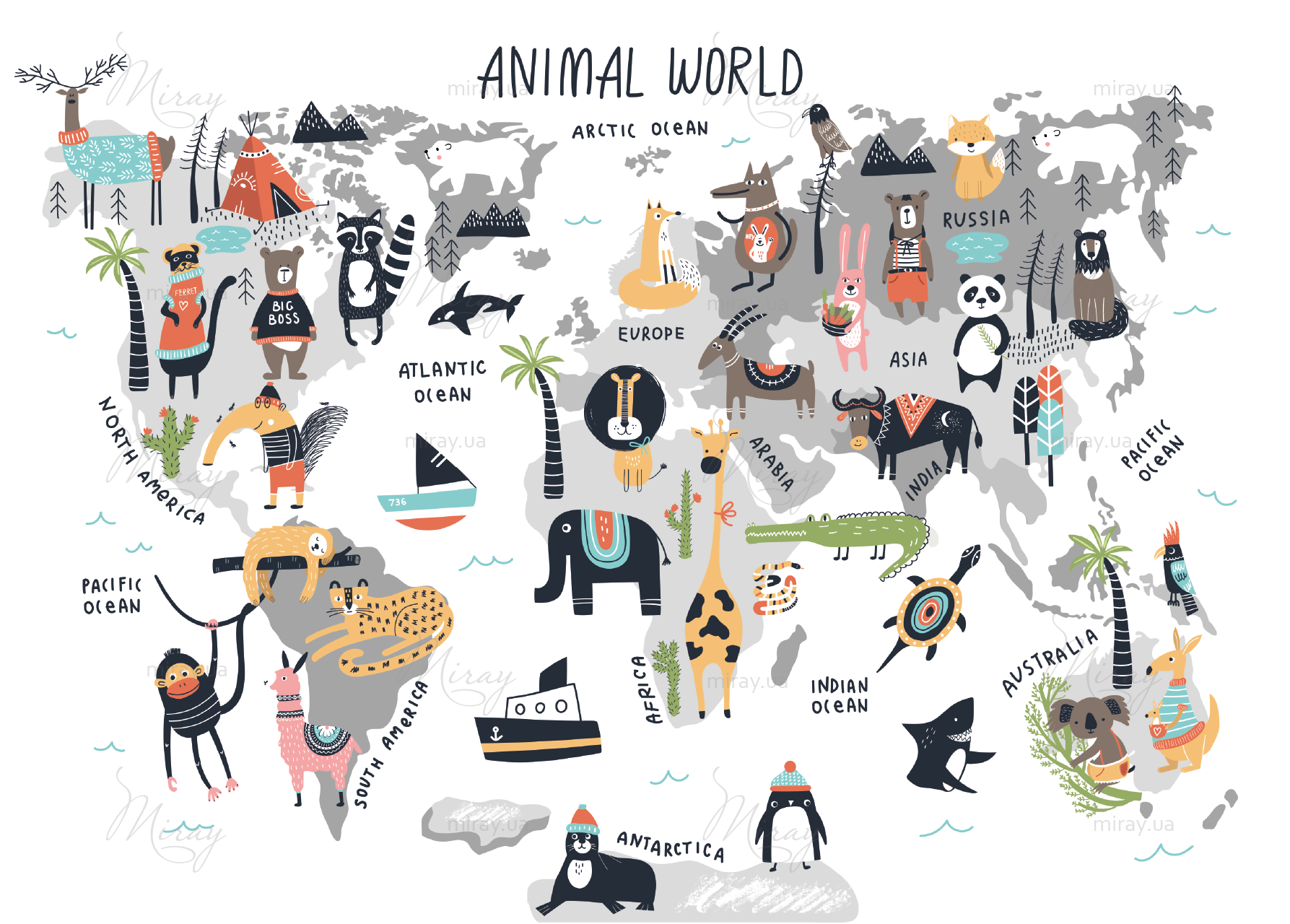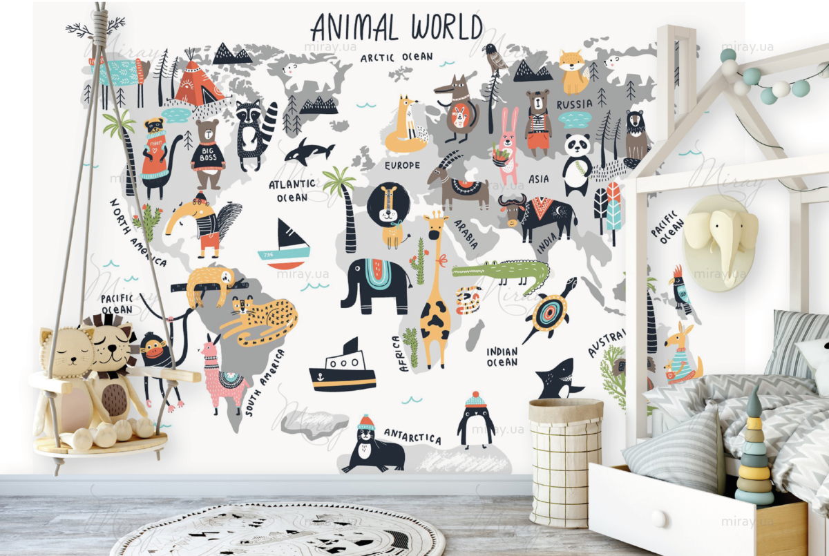 This is not just a decor, it is part of the knowledge of the world, the development of the child, his knowledge of our planet. Incredibly beautiful and stylish card will become the main decoration of the children’s room