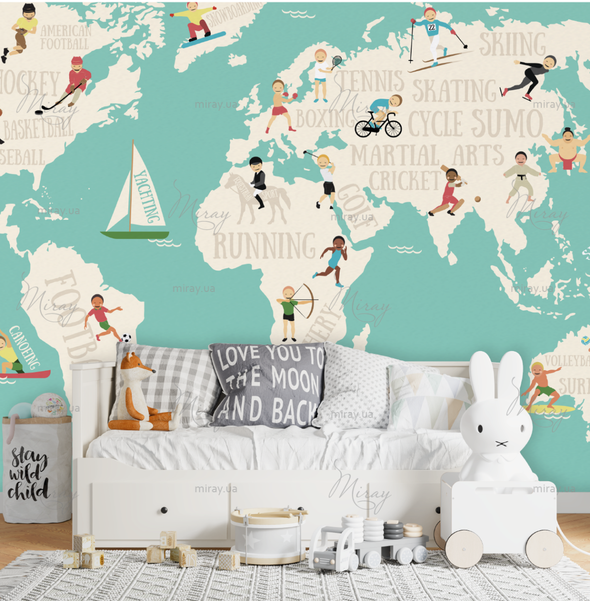 This is not just a decor, it is part of the knowledge of the world, the development of the child, his knowledge of our planet. Incredibly beautiful and stylish card will become the main decoration of the children’s room