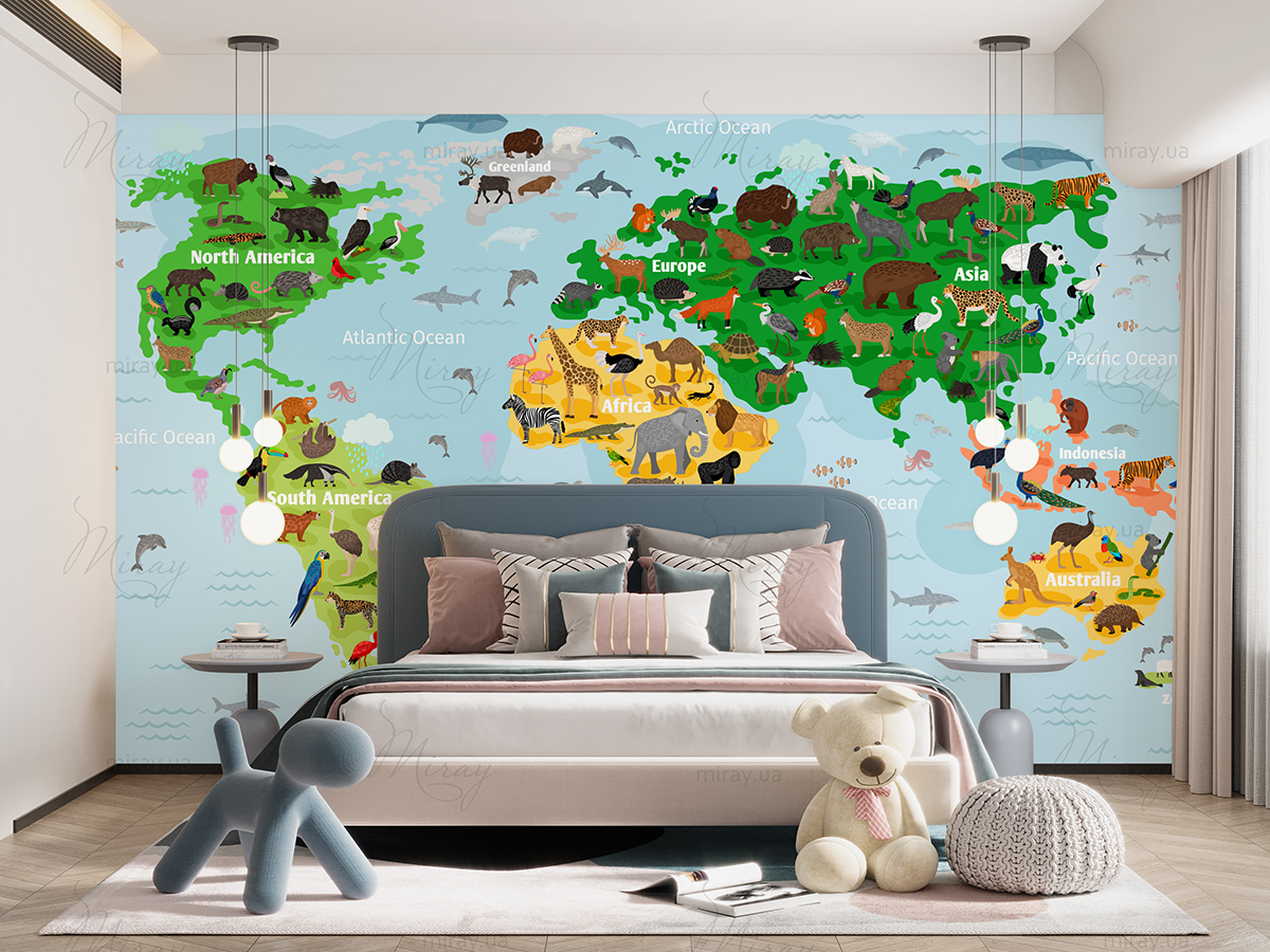 This is not just a decor, it is part of the knowledge of the world, the development of the child, his knowledge of our planet. Incredibly beautiful and stylish card will become the main decoration of the children’s room