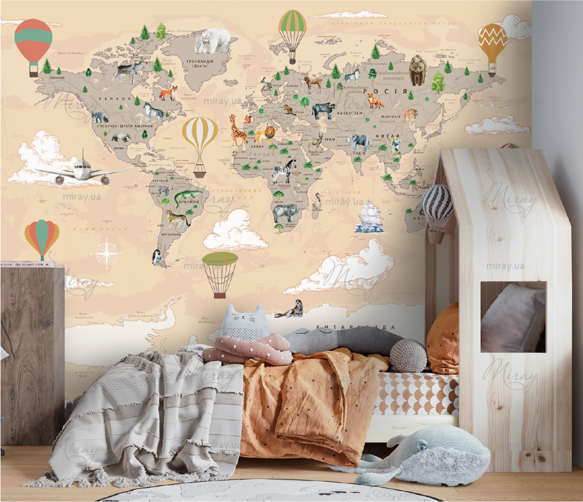 This is not just a decor, it is part of the knowledge of the world, the development of the child, his knowledge of our planet. Incredibly beautiful and stylish card will become the main decoration of the children’s room