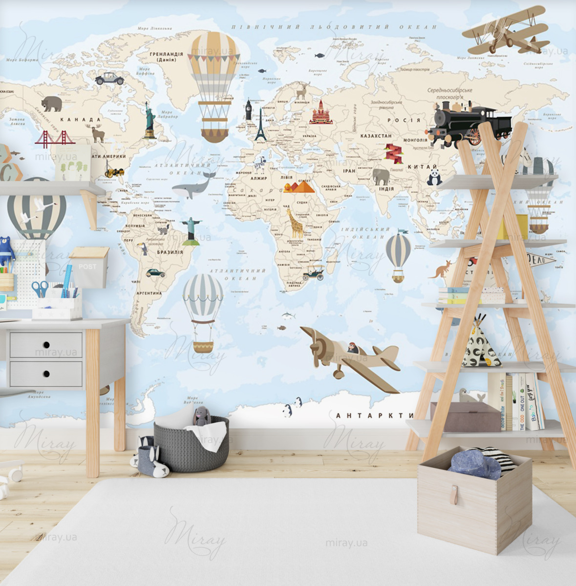 This is not just a decor, it is part of the knowledge of the world, the development of the child, his knowledge of our planet. Incredibly beautiful and stylish card will become the main decoration of the children’s room