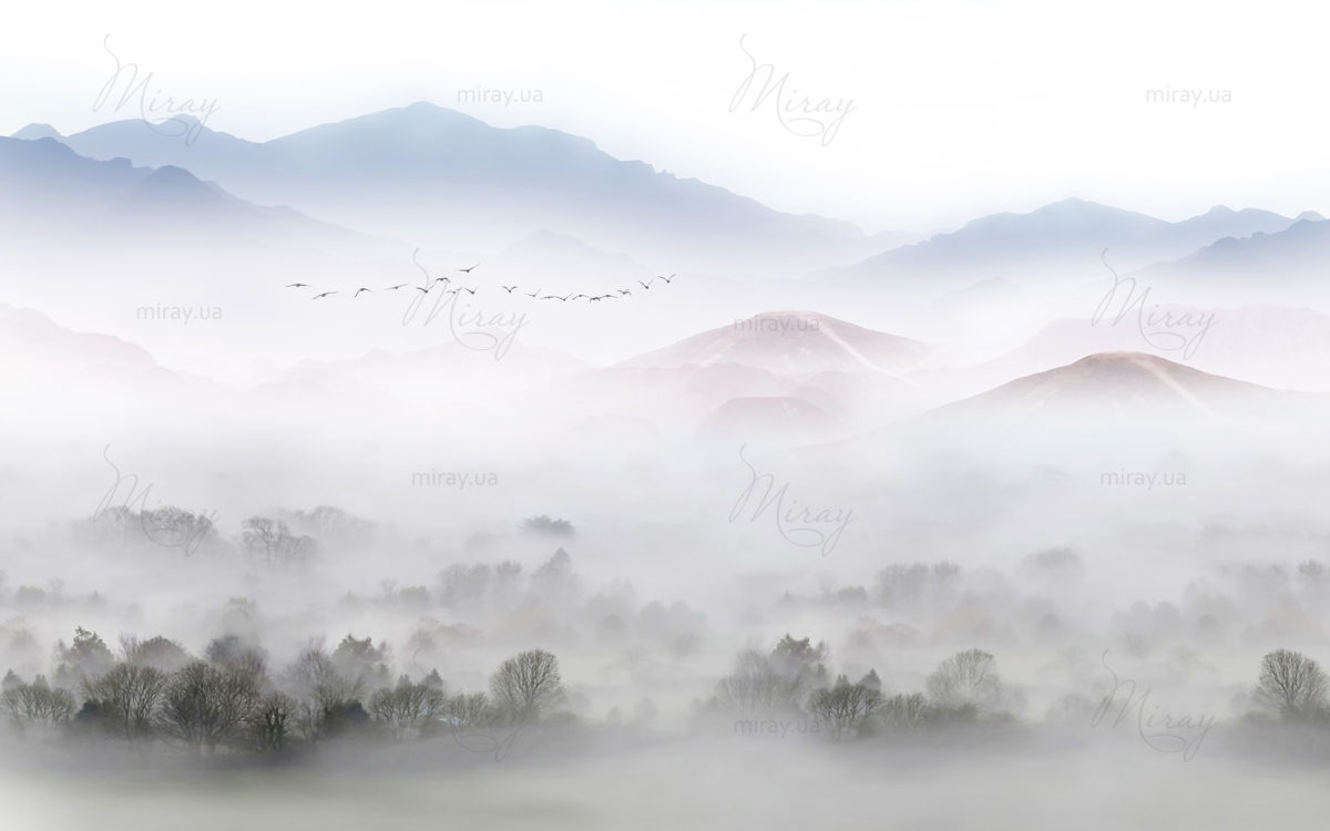 Mountains in dense fog
