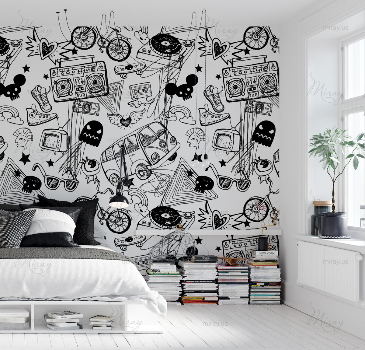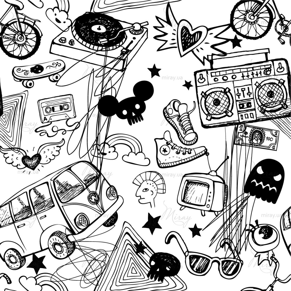 Pattern with bw drawings
