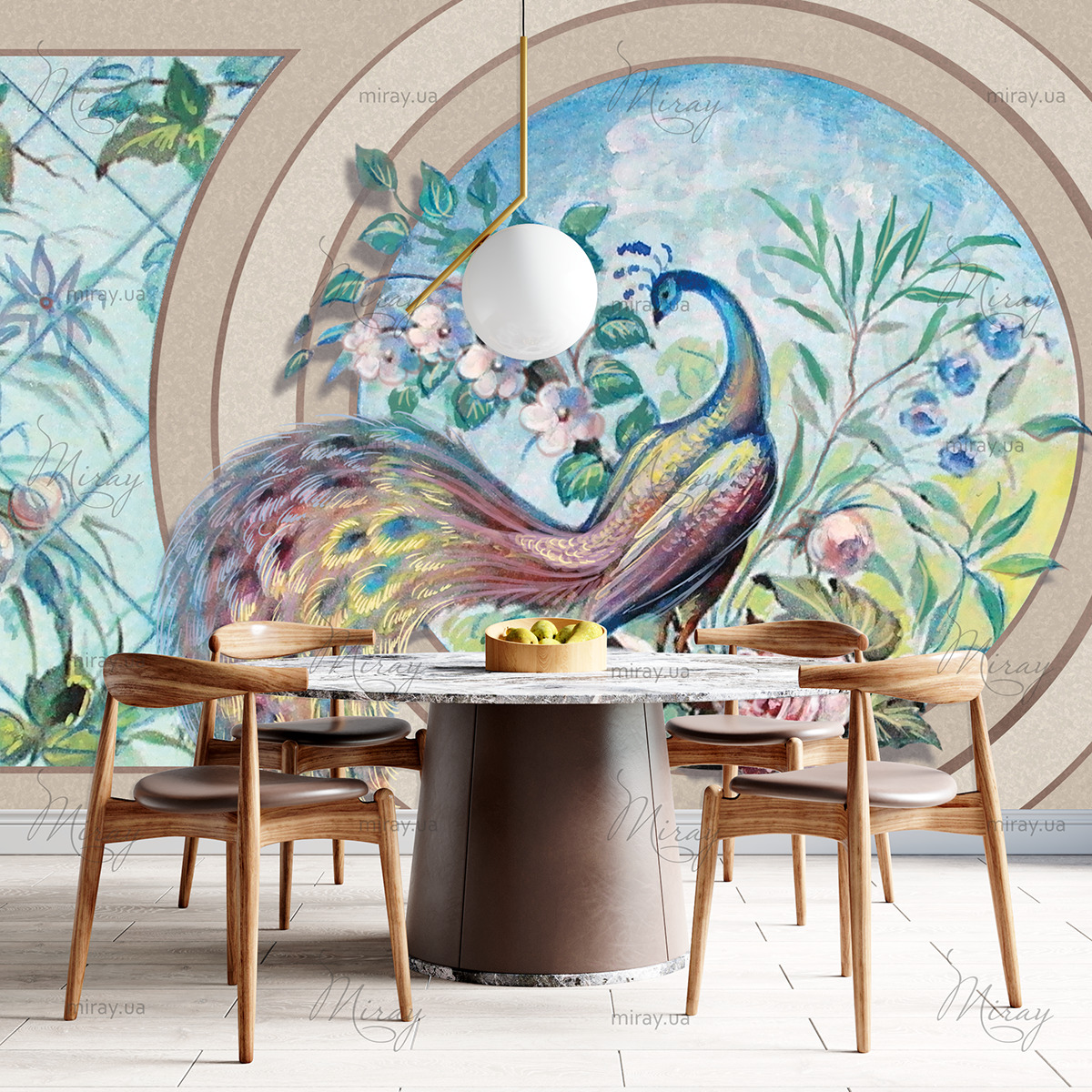 Peacock and flowers