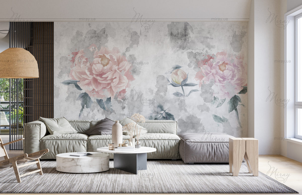 Peonies on a texture wall