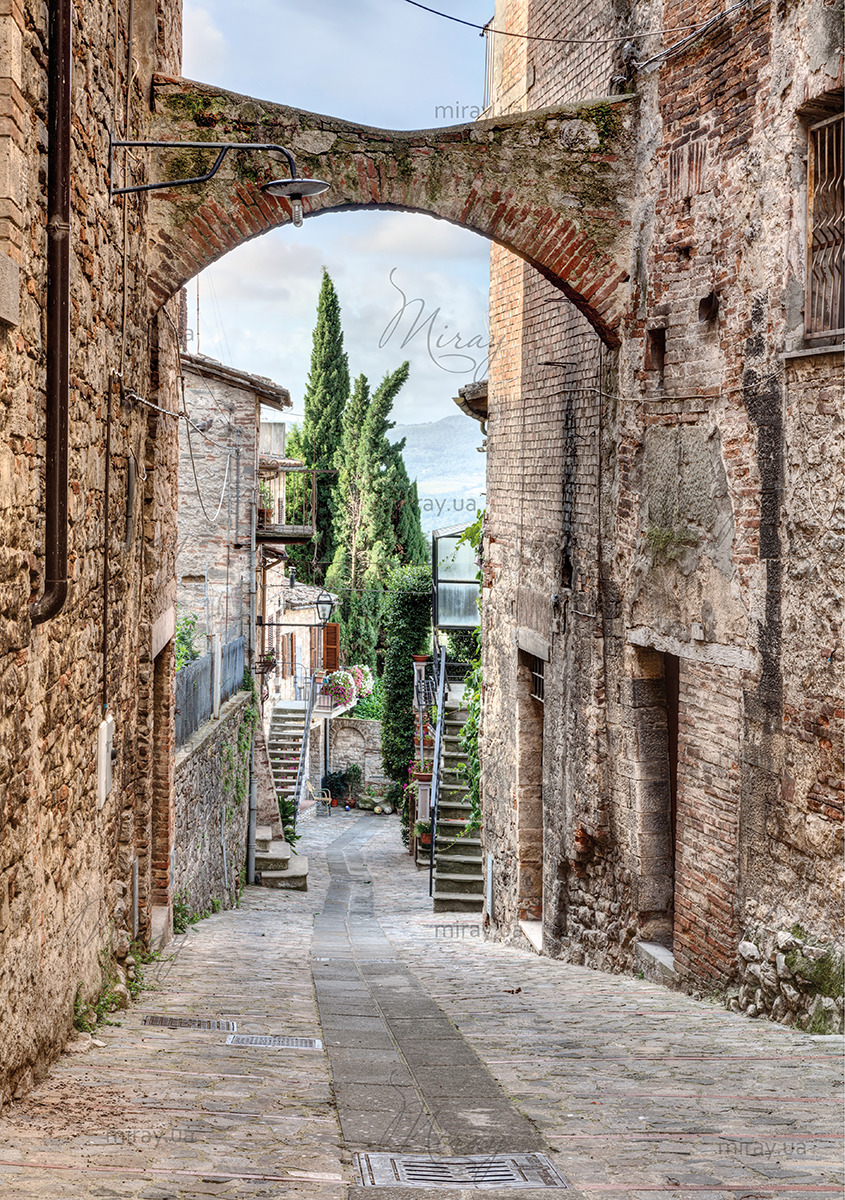 p-02-079-Picturesque antique narrow alley with an arch, Italy
