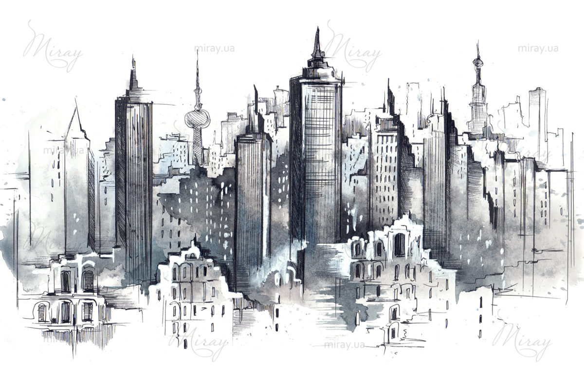 Skyscrapers in watercolor