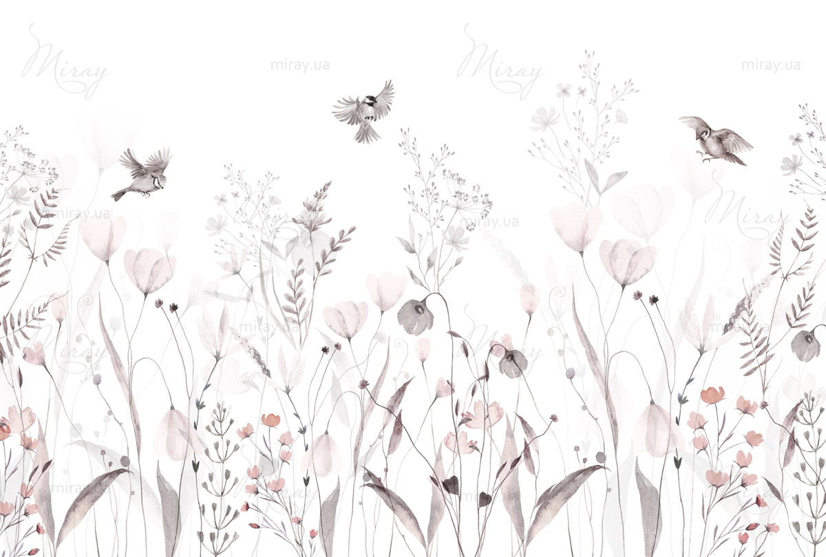 Sparrows above flowers