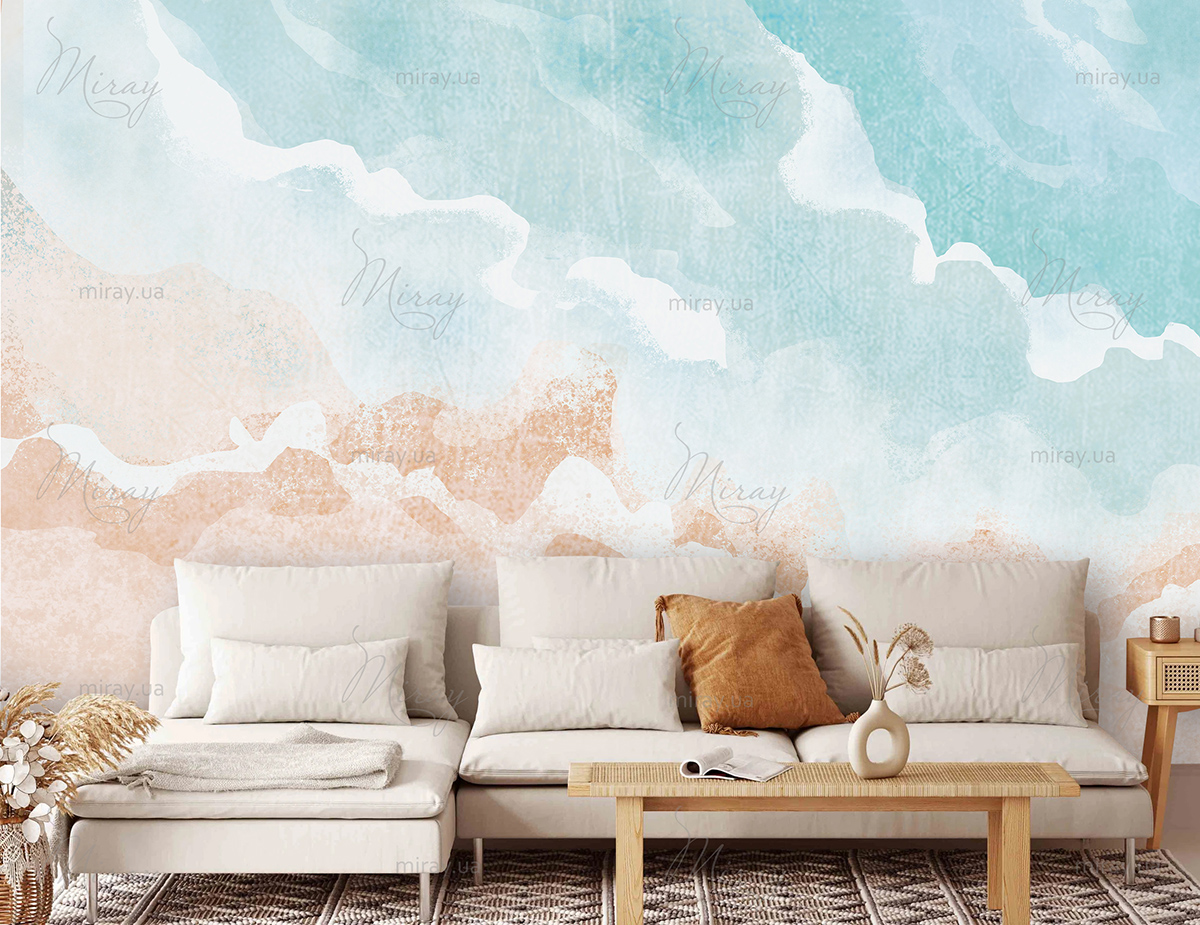 Boho Sea Beach with Waves Print.. Abstract Background. Bohemian printable wall art, boho poster, pastel abstract art, landscape drawing, sea painting. Abstract Arrangements.