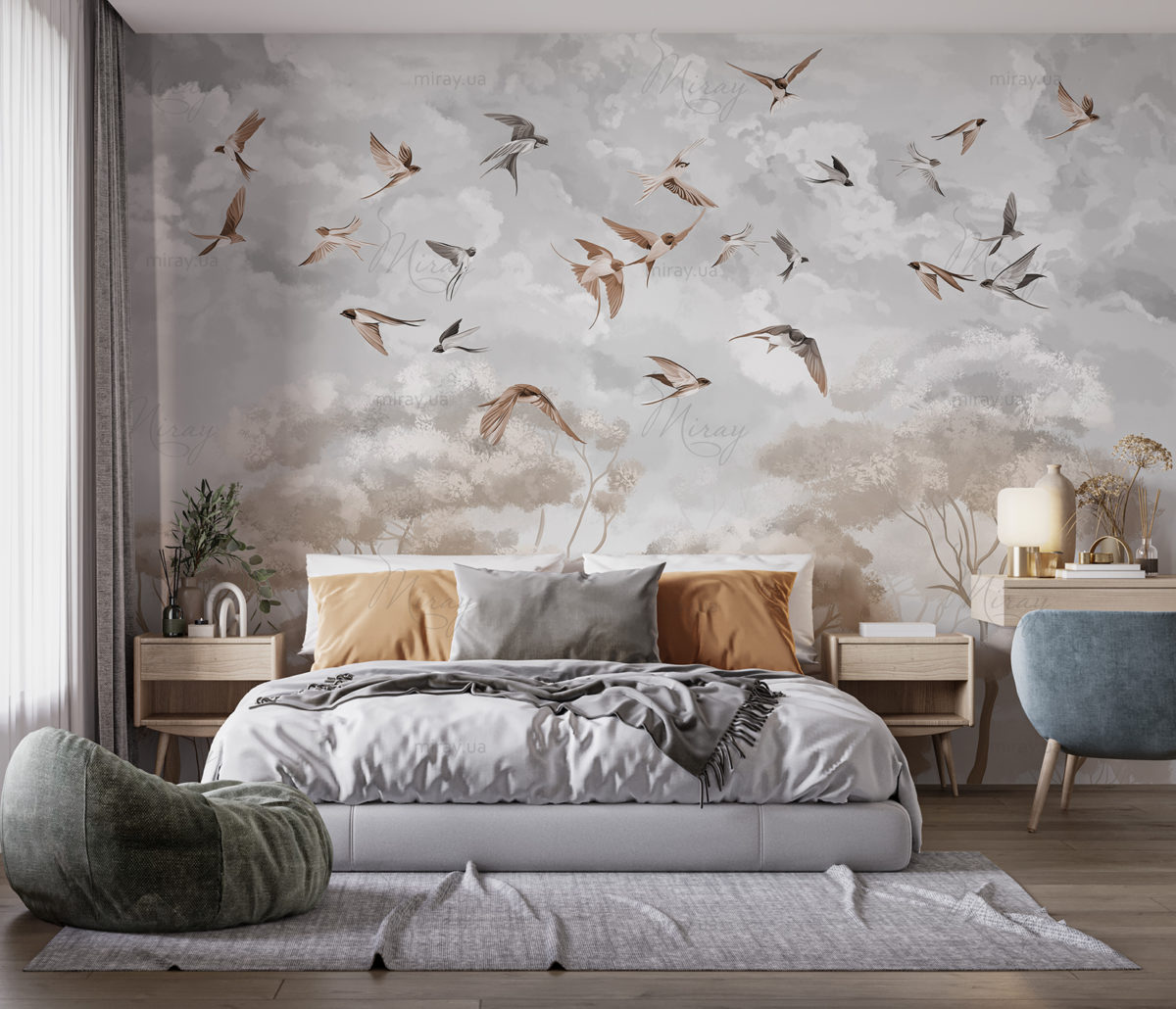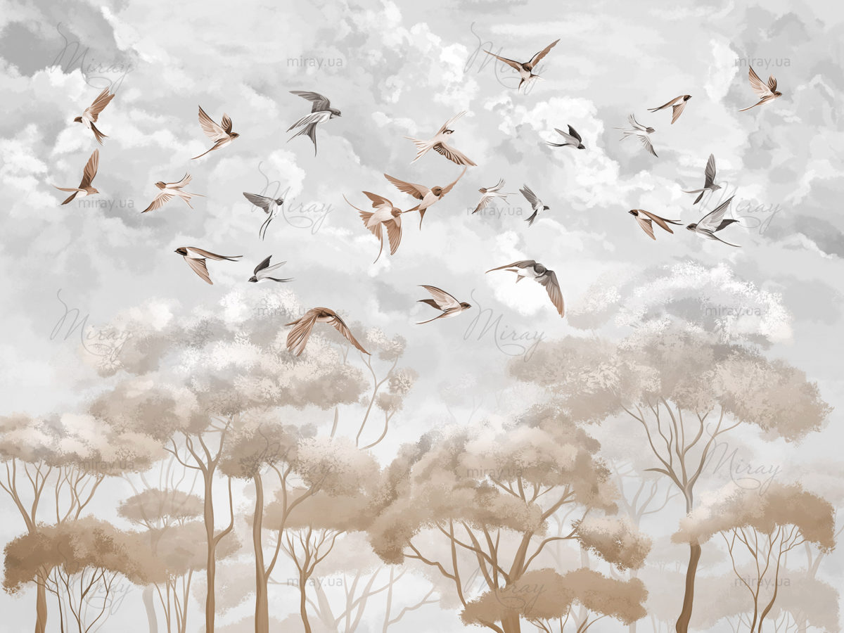Swallows over trees