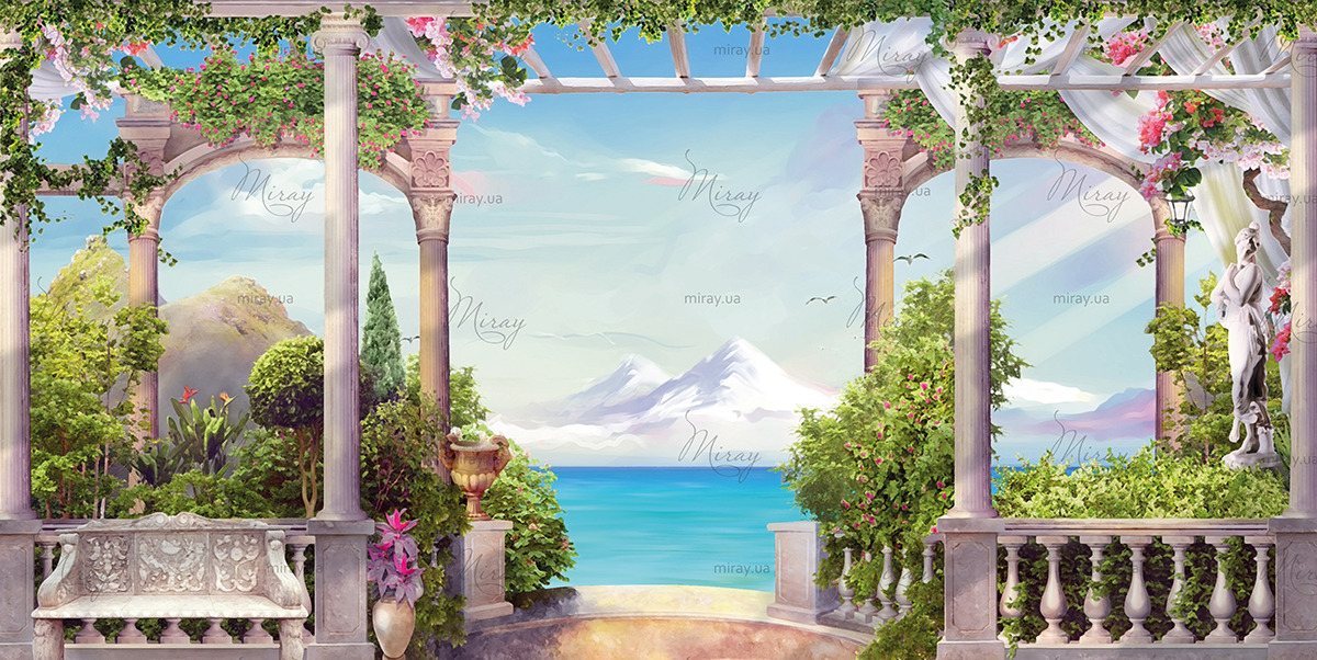 Terrace with flowers and sea view