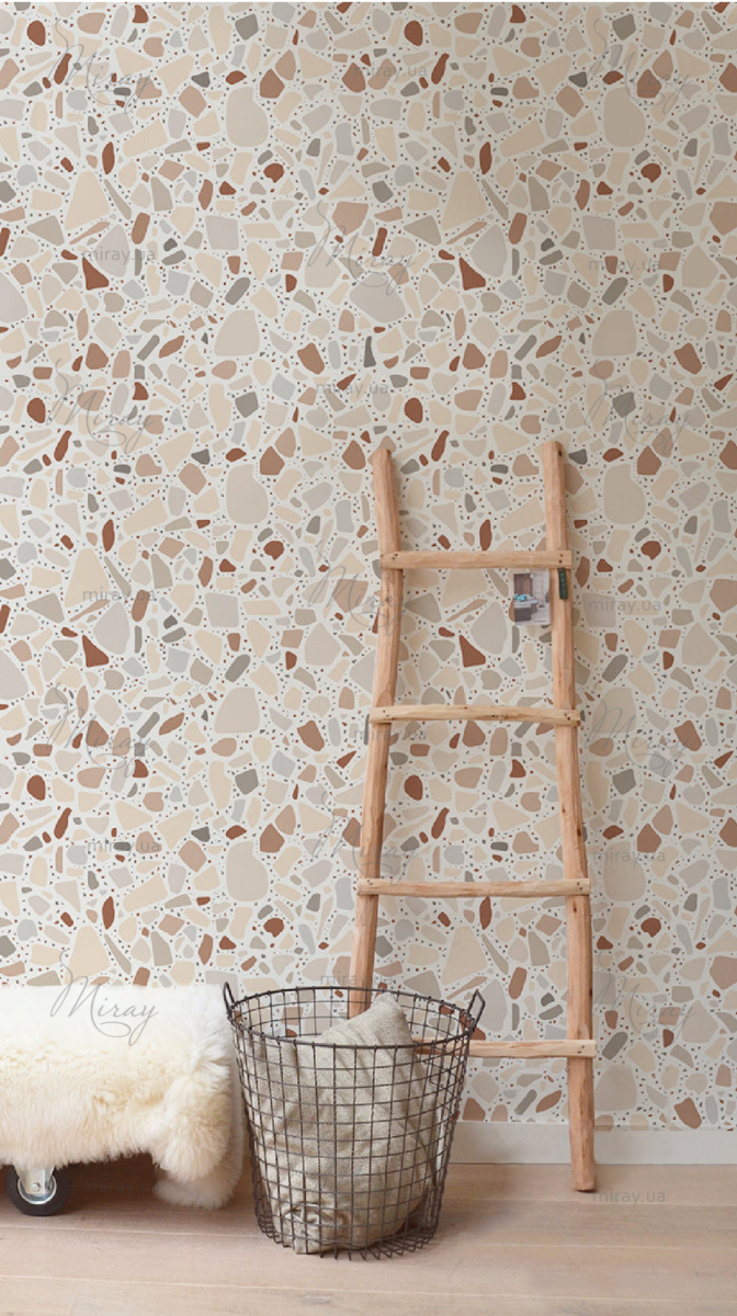 Now this drawing is at the peak of popularity, it can be seen on wallpaper, interior items, clothes, shoes, accessories. Do you like our terrazzo wallpapers?