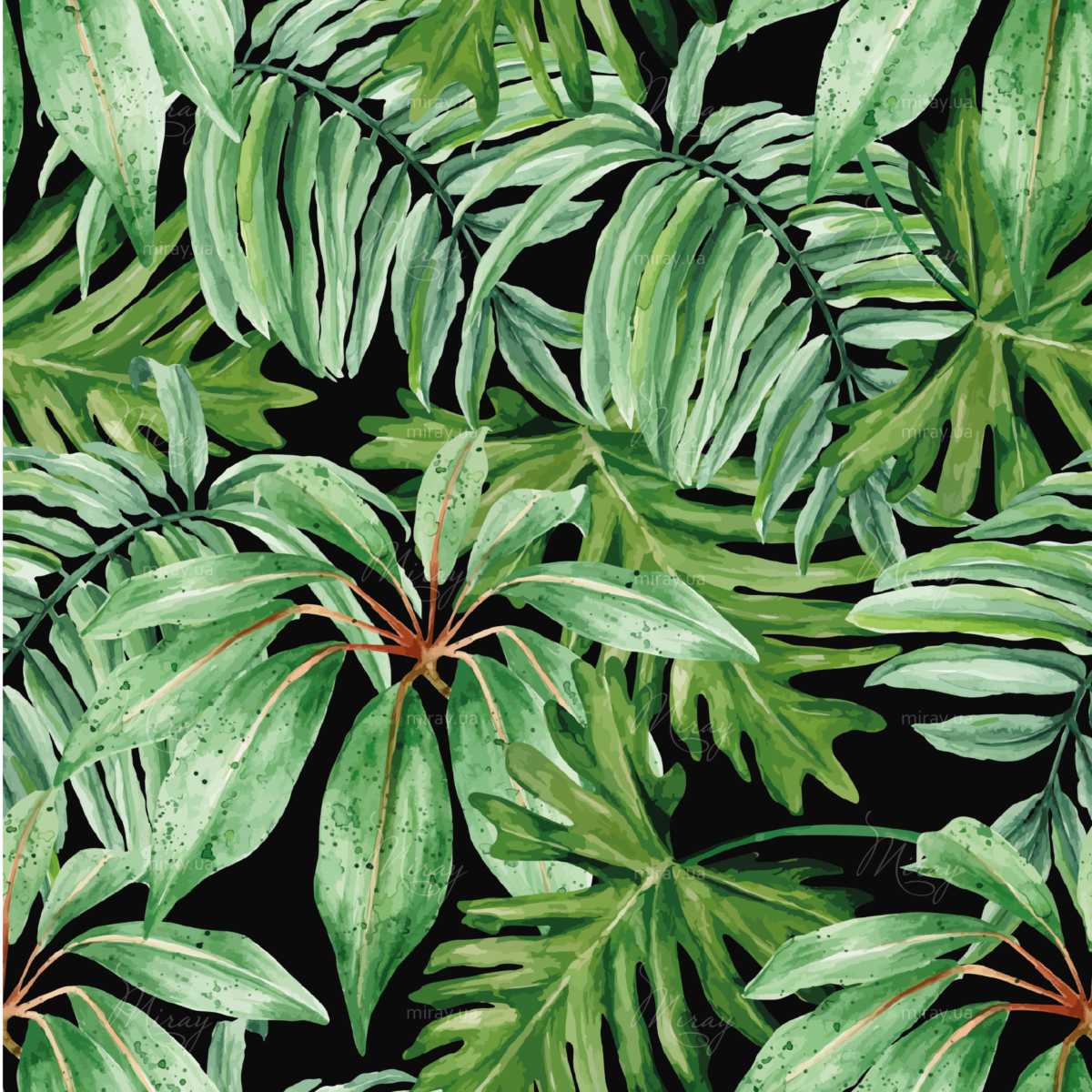 Tropical leaves on a dark background