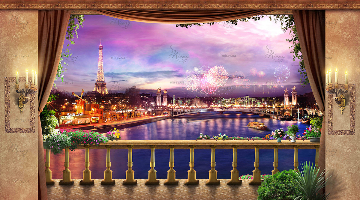 View from the terrace of the fireworks in Paris