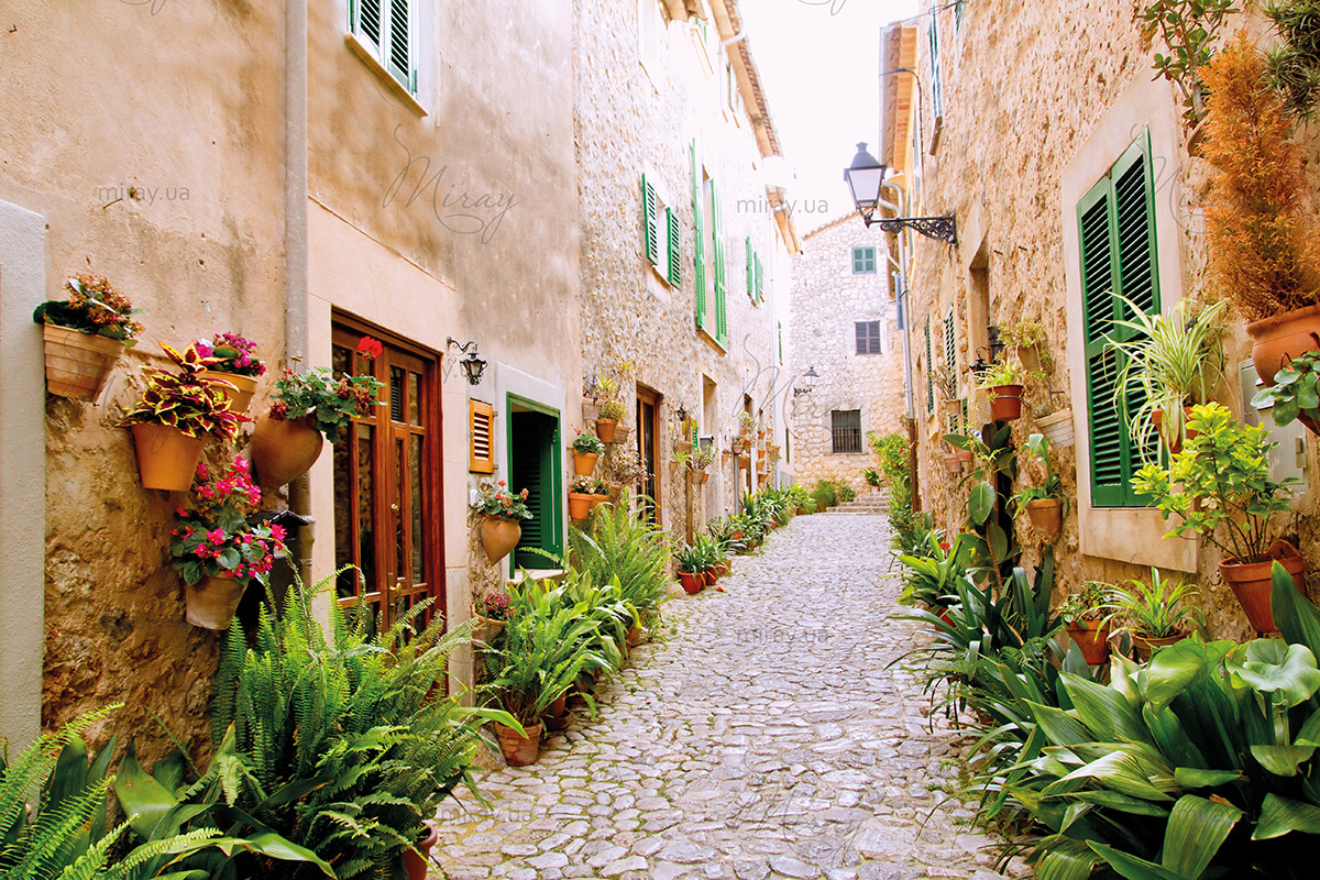 p-02-052-Village street with flower pots on the facades, Spain