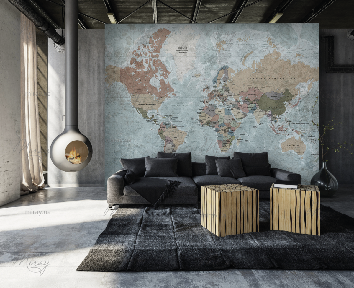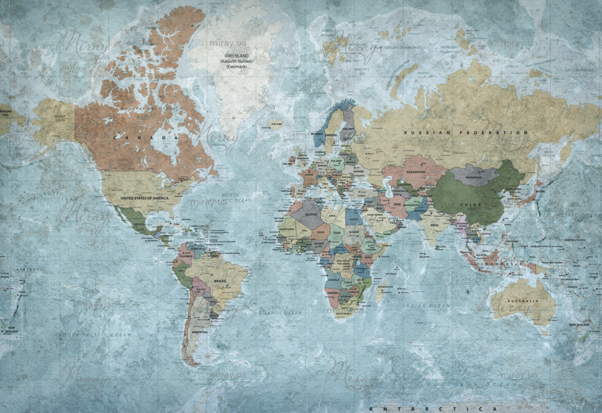 Political World Map in Vintage Style