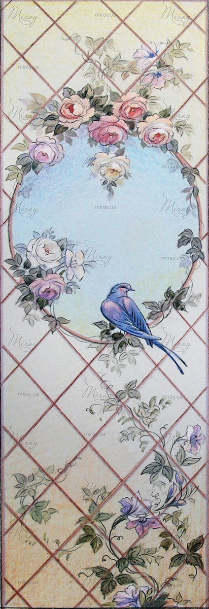 f-04-001-Watercolor drawing with bird and flowers