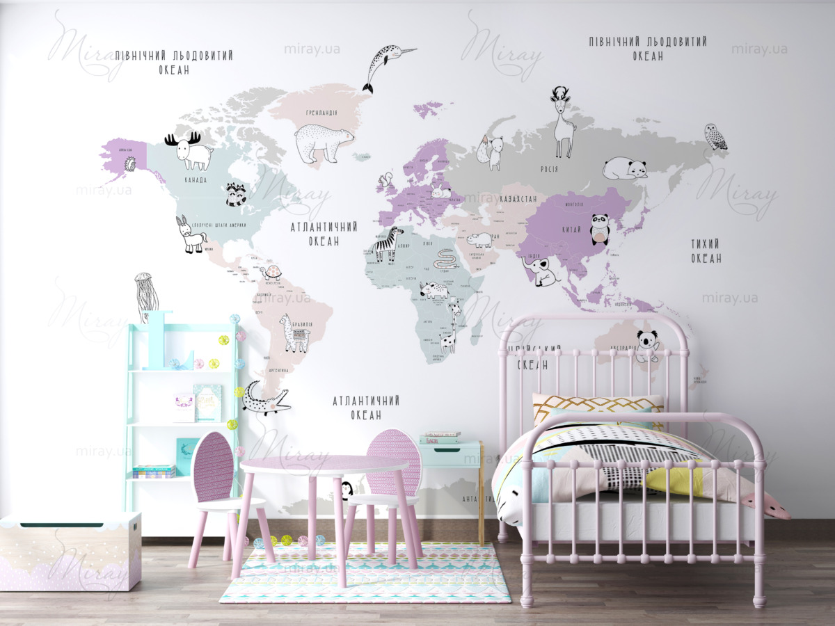 This is not just a decor, it is part of the knowledge of the world, the development of the child, his knowledge of our planet. Incredibly beautiful and stylish card will become the main decoration of the children’s room