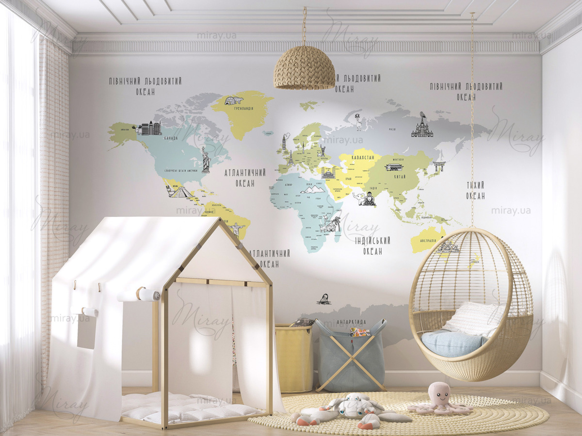 This is not just a decor, it is part of the knowledge of the world, the development of the child, his knowledge of our planet. Incredibly beautiful and stylish card will become the main decoration of the children’s room