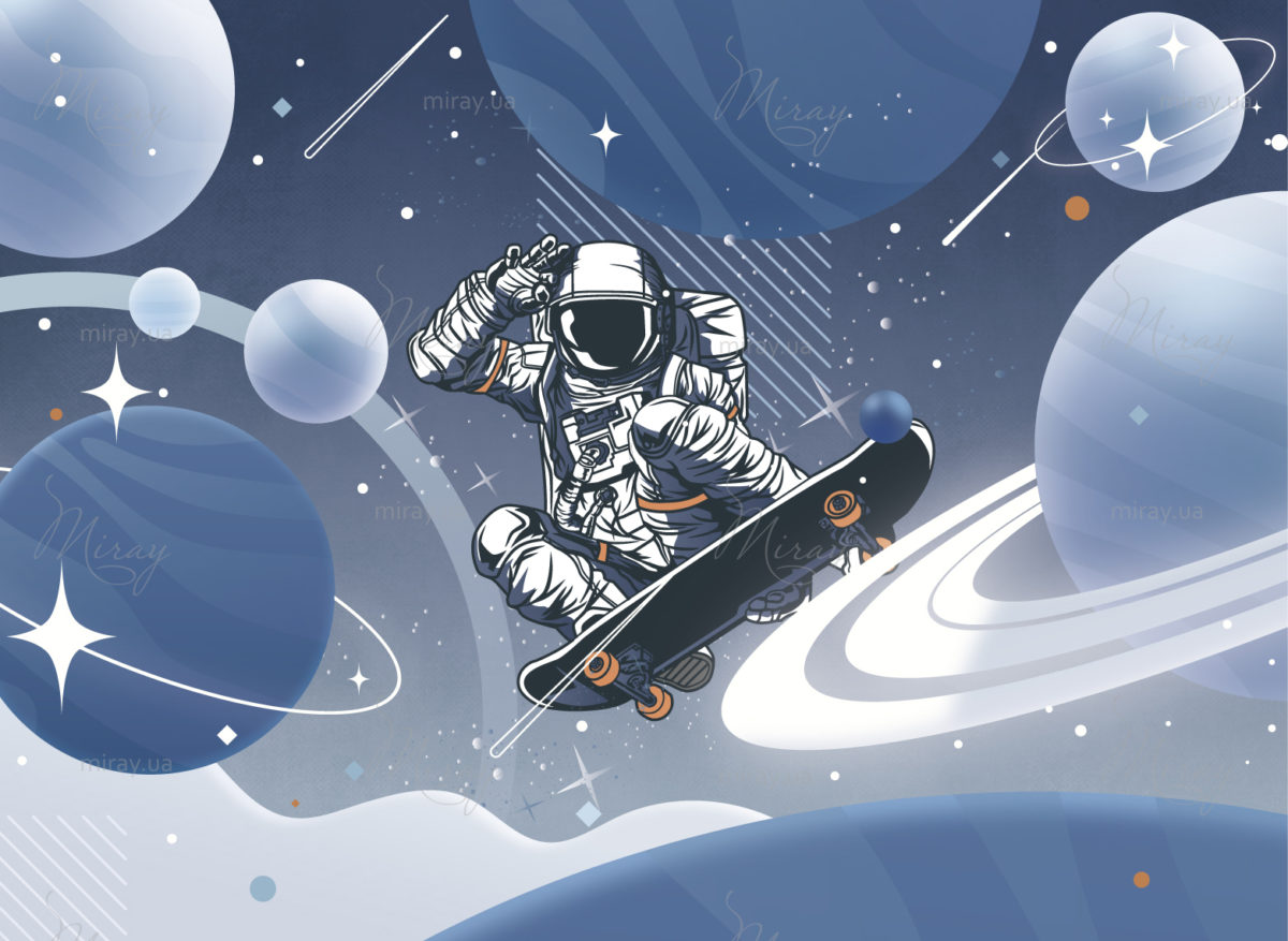 Астронавт на скейтборді синій