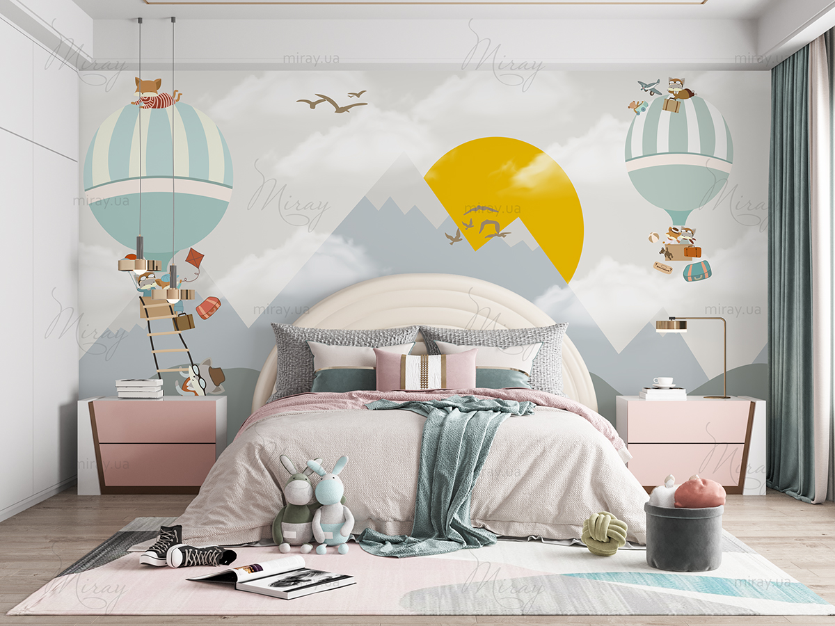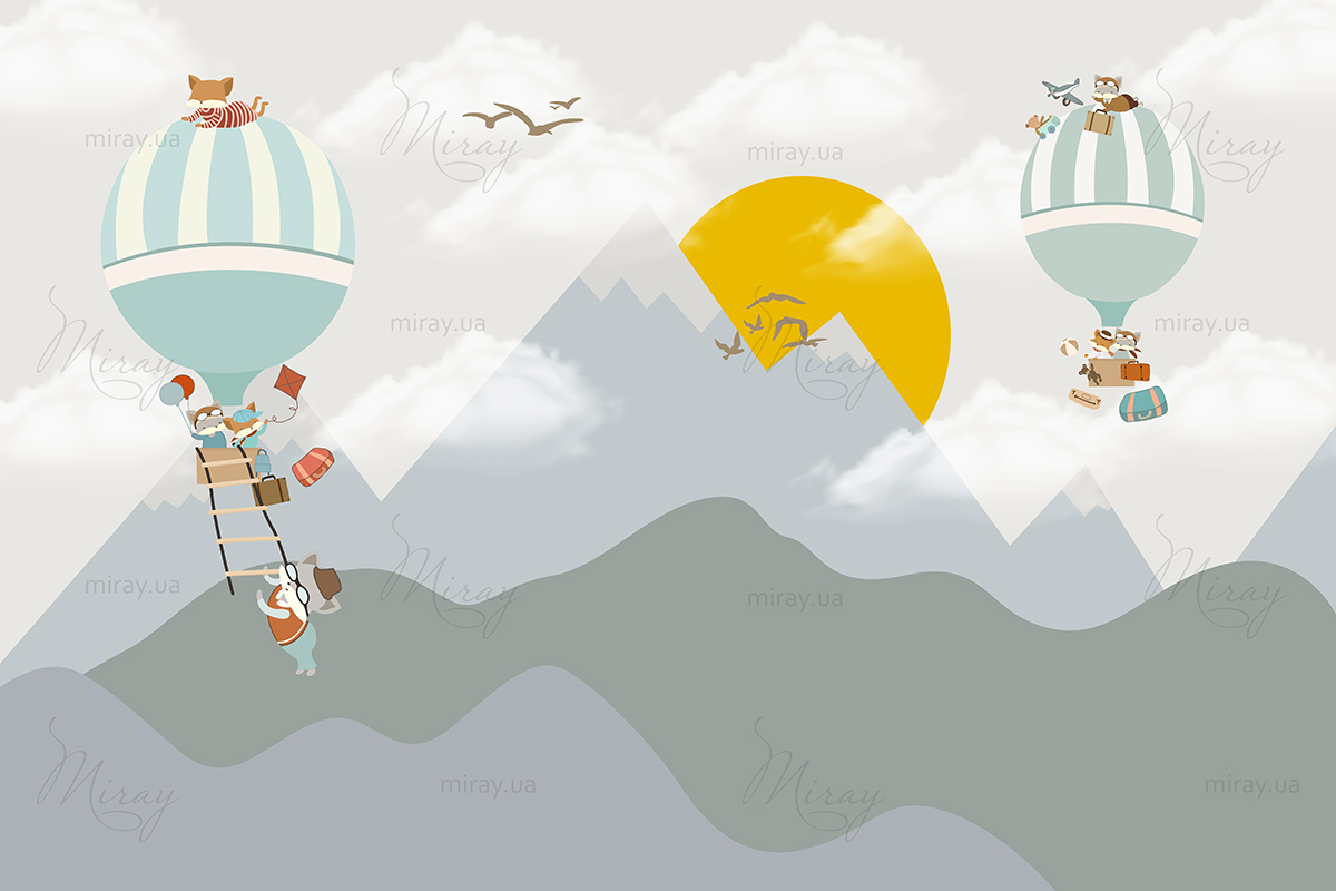 Звірятка на повітряних кулях над горами
