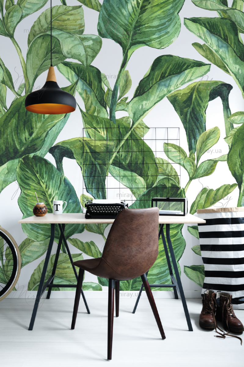 Бананове листя на світлому фоні