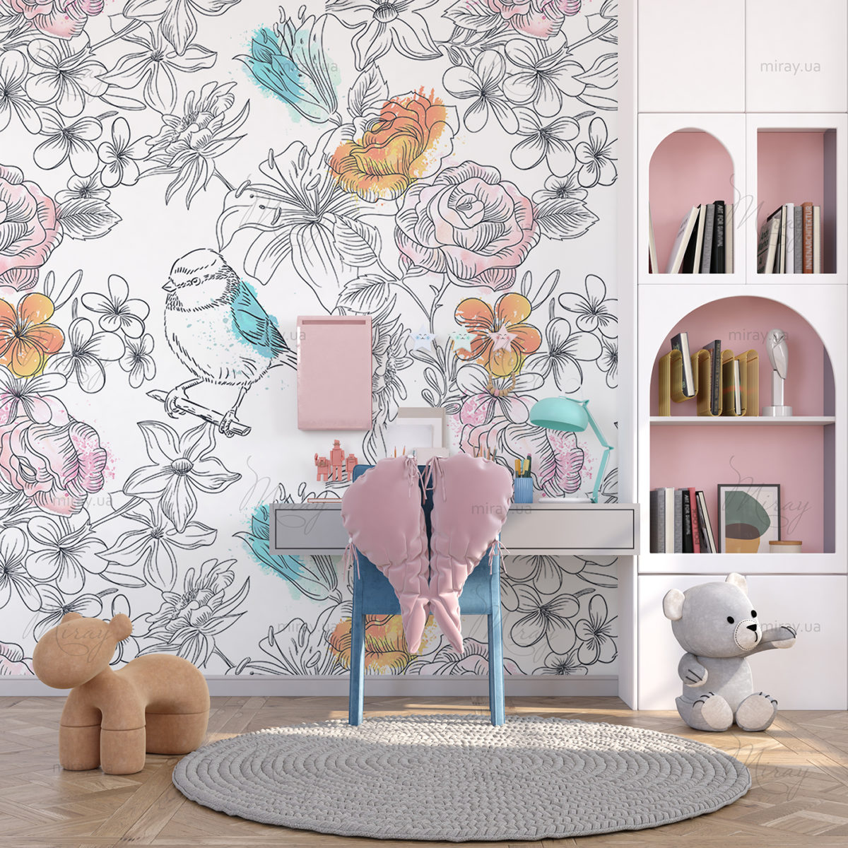Пташки на тлі квітів