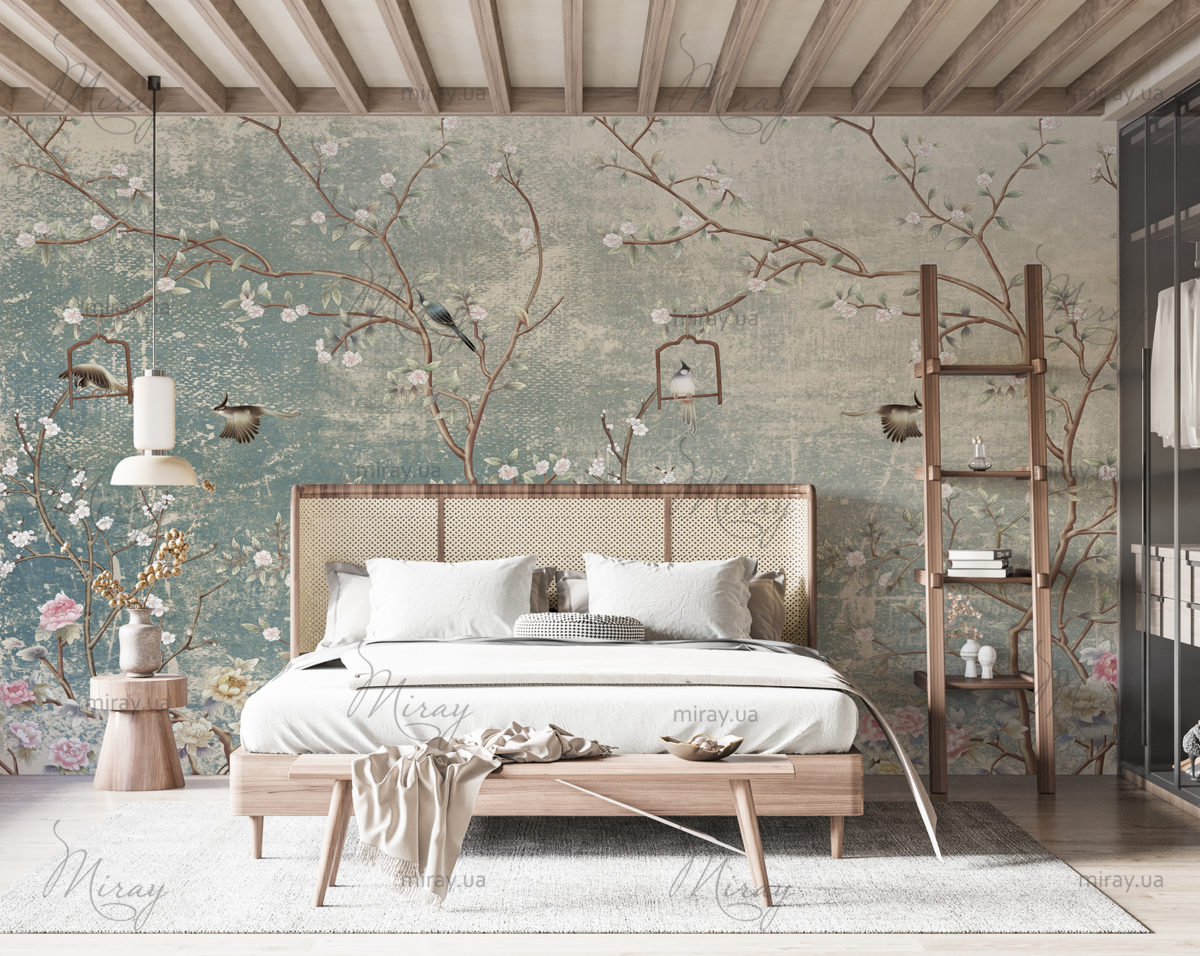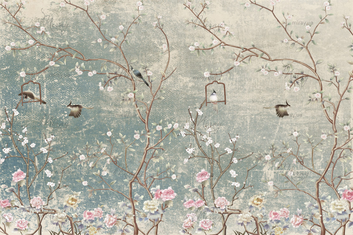 Квітучі дерева з птахами 2